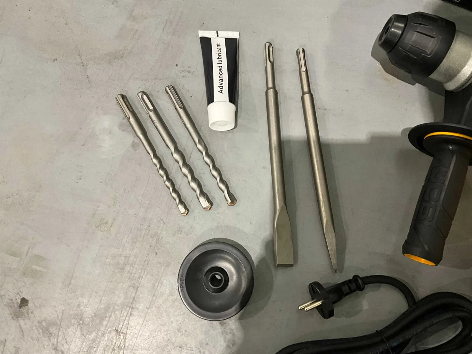Ongebruikt , 1x JCB 1500W boorhamer, 1 x zijhandgreep, 1 x puntbeitel 14 x 250mm, 1 x platte beitel 14 x 250mm, 3 x boren 8/10/12mm x 150mm, 1 x reserve paar koolborstels, 1 x stofkap, 1 x vetbuis, 1 x moersleutel Merk: JCB Type: 21-RH1500W Bouwjaar: 2025 Vermogen: 1500W Gewicht: 5