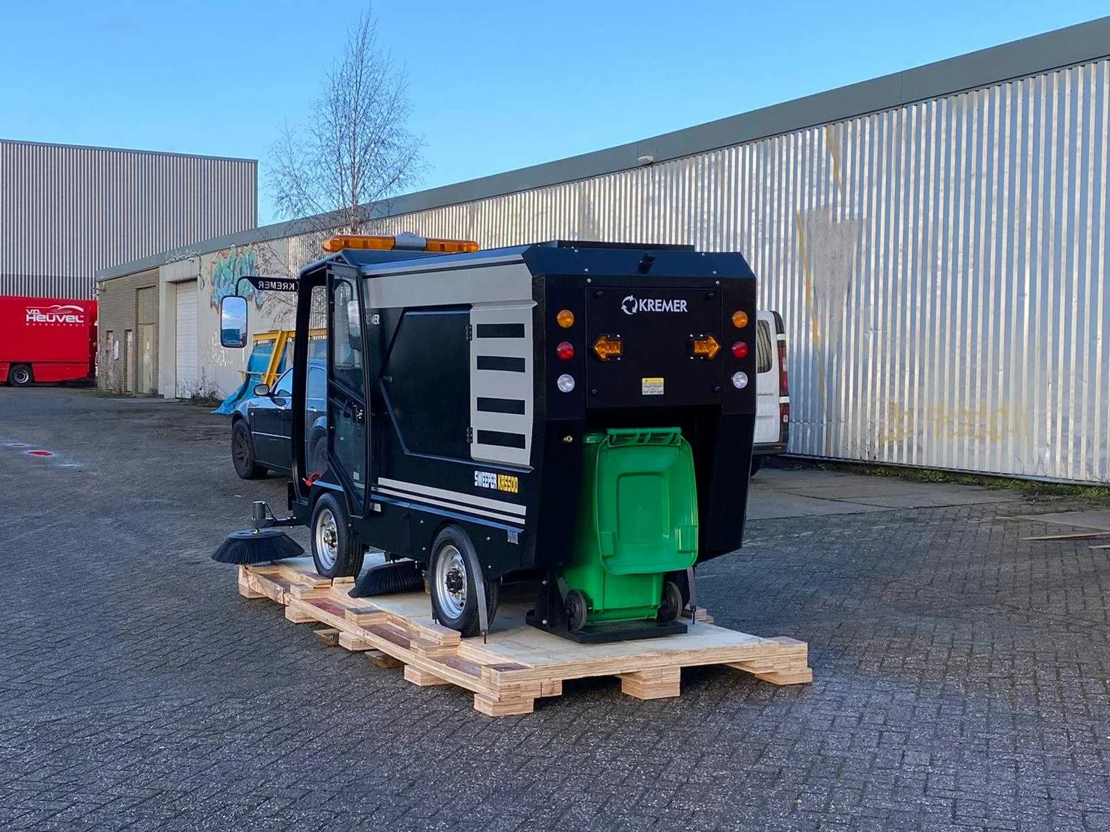 Ongebruikt Veegbreedte: 2.200 mm Inhoud vuilcontainer: 240 liter Laadtijd: 6,5 uur Werkduur: 5 uur Totaalgewicht: 1.580 kg Aandrijving: 48 V / 300 Ah accu Hoofdborstelmotor: 800 W × 2 Zijborstelmotor: 90 W × 4 Zuigmotor: 50 W × 2 Aandrijfmotor: 500 W Stoftrilmotor: 50 W × 2 Maximale hellingshoek: 25 % Rijsnelheid: 0 – 25 km/u Antislipregeling: Ja Beizichting op afspraak Merk: Kremer Type: KRS500 Bouwjaar: 2025 Werkbreedte: 2200mm Elektrisch: true Afgelezen urenstand: 1hr Accu lader: true Aansluiting: 48V Eigen gewicht: 780kg Totale afmeting L: 3950mm Totale afmeting Breedte: 2050mm Totale afmeting Hoogte: 2000mm