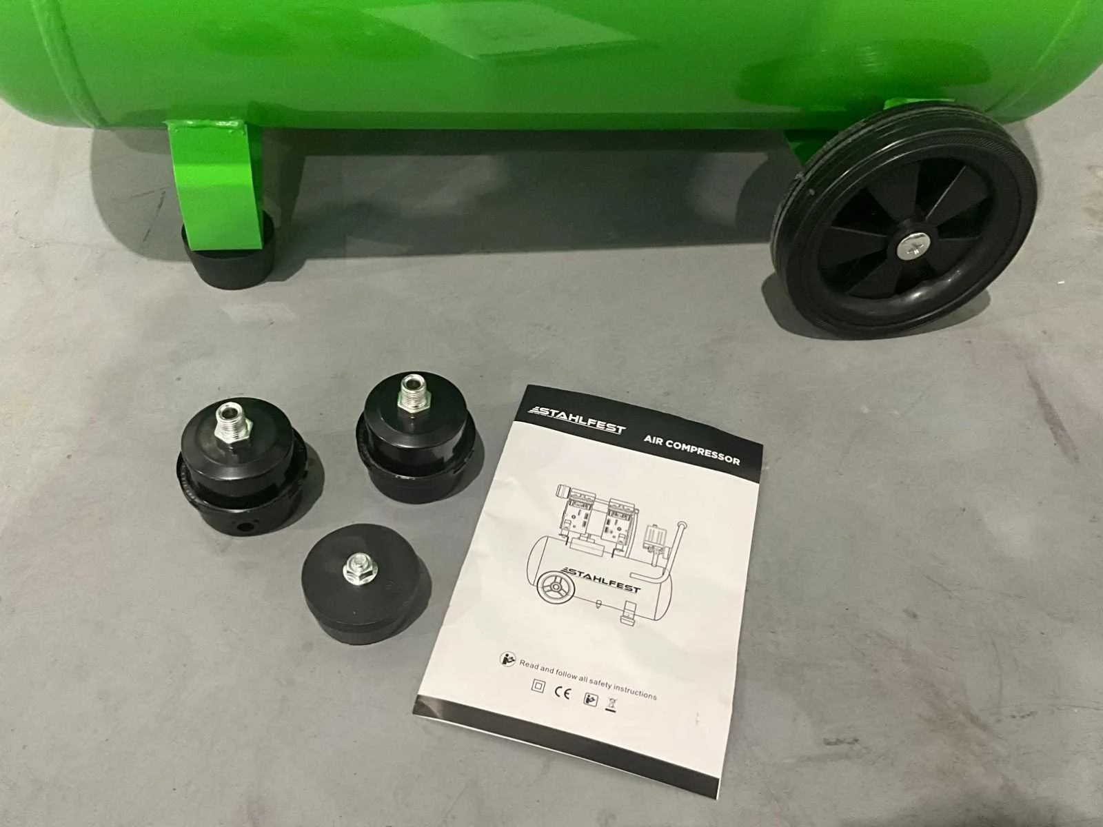 Ongebruikt in de originele verpakking Vermogen: 550 W * 2 Stationair toerental: 1400 rpm Cilinderinhoud: 204 l/min Tankinhoud: 50 liter Maximale druk: 8 bar Motorklasse: Klasse B Geluid: 68 dB Nettogewicht: 35 kg Merk: Stahlfest Type: SF1100-115AC Bouwjaar: 2025 Aansluiting: 220V Eigen gewicht: 35kg