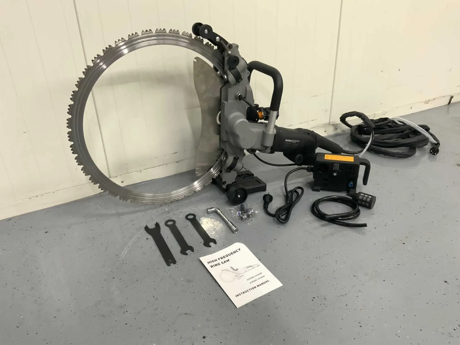 Ongebruikt in de originele verpakking Oil-free & Brushless Ring Saw Rated power 5000w Constant RPM 1500rpm Voltage AC220V Max cutting size 49 cm Blade diameter 600 mm nw 11,5 kg Merk: UF Equipment Type: AC8600 Bouwjaar: 2025 Diameter zaagblad: 600mm Motorvermogen (kW): 5kW