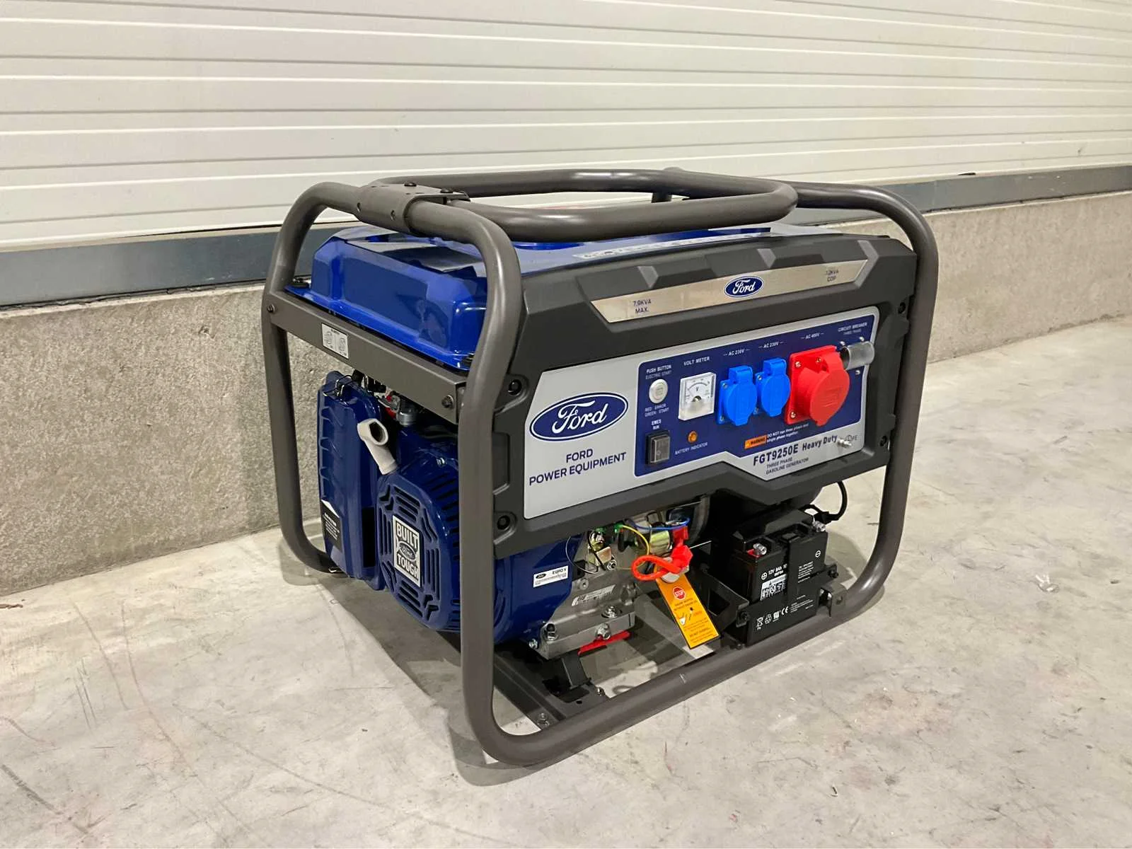 Ongebruikt , 220V en 380V , maximaal vermogen 6500W , 7.5 kVA continu , 8,125KVA piek , handboek aanwezig , 3 fase aansluitingen , start elektrisch met bijgeleverde accu , keyless start , 420cc motor met 15pk , 2 stopcontacten 120V 20A duplex , een 120V AC 30A , een 120V AC 30A met twistlock Merk: Ford Type: FGT9250E Bouwjaar: 2025 Capaciteit.: 6.50kVA Aansluiting: 230V Motor merk: Ford Afgelezen urenstand: 1 Handboek aanwezig: true