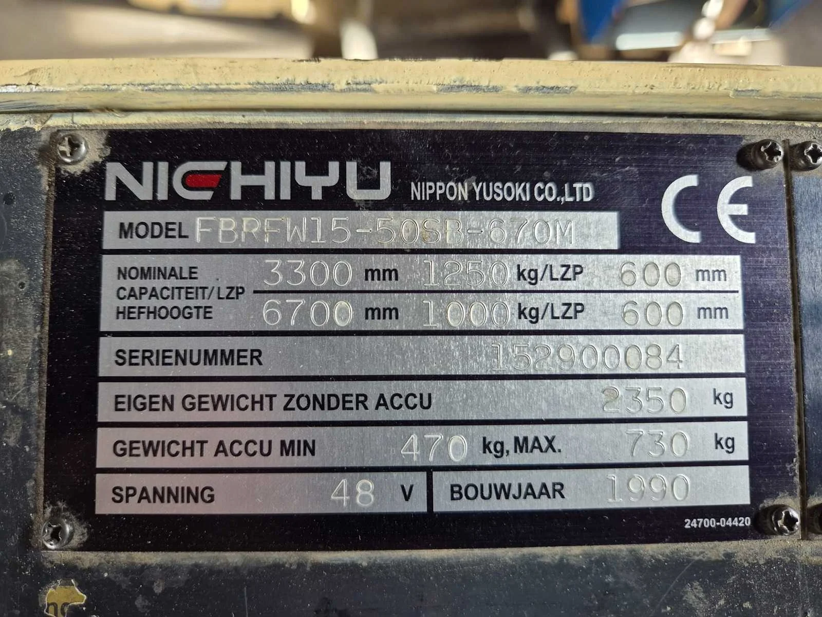 Let op: Kijkdag en ophaaldag alleen op afspraak! Let op: Objecten op verschillende locaties! Wij adviseren u gebruik te maken van de kijkdag, voor u eigen oordeel. Maak hiervoor een afspraak via info@sbservicetrucks.com! Merk: Nyk Type: FBRF-15-50SB-670 Bouwjaar: 1990