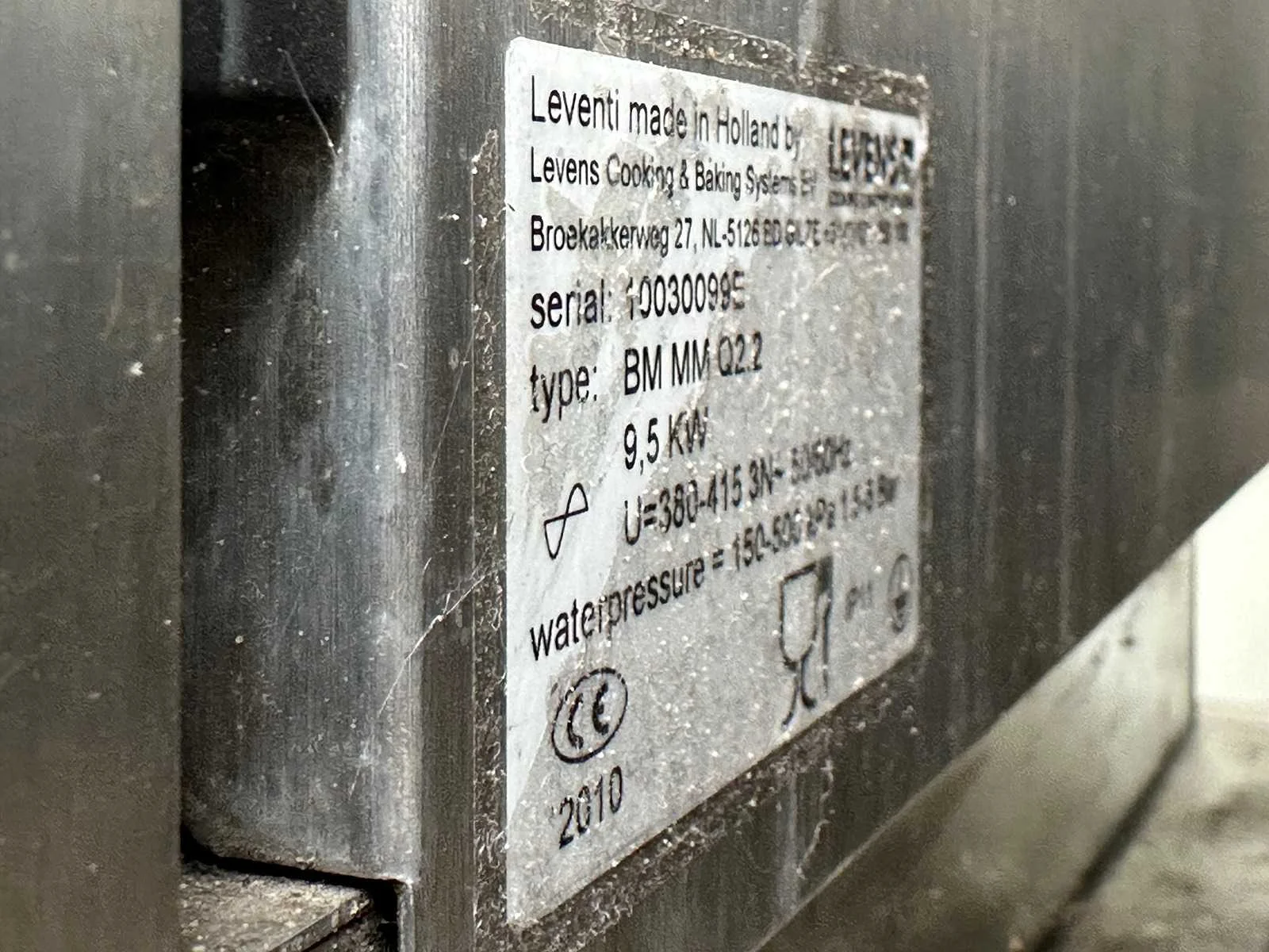 Met Onderstel en afzuigkap ; 9,5kW Merk: Leventi Type: Bakermat Q2.2 Aantal niveau's: 6 Aansluiting: 380V Totale afmeting L: 970mm Totale afmeting Breedte: 850mm Totale afmeting Hoogte: 2400mm