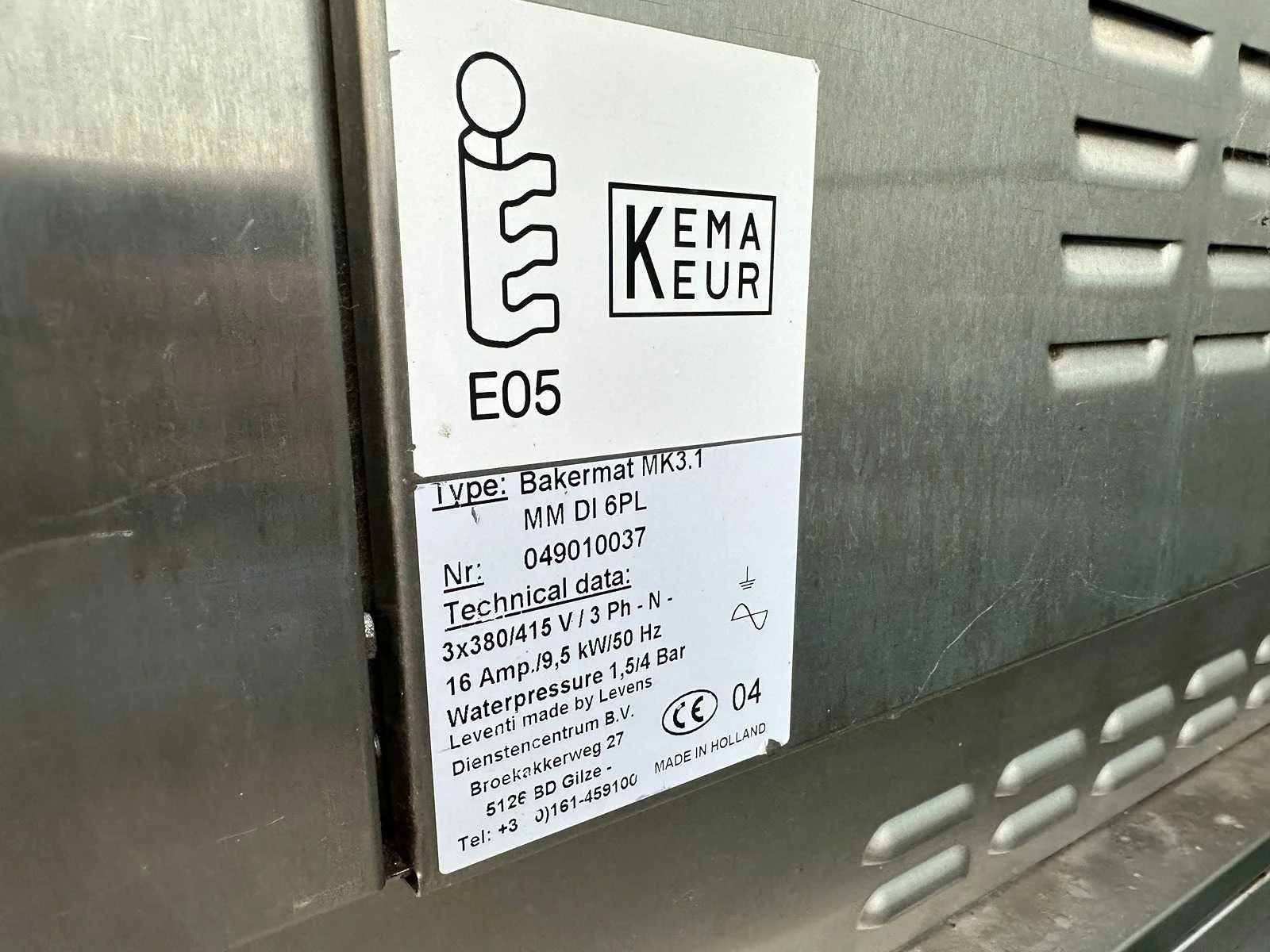 Merk: Leventi Type: Bakermat MK3 Duplo Aantal niveau's: 12 Aansluiting: 380V Totale afmeting L: 970mm Totale afmeting Breedte: 850mm Totale afmeting Hoogte: 1800mm