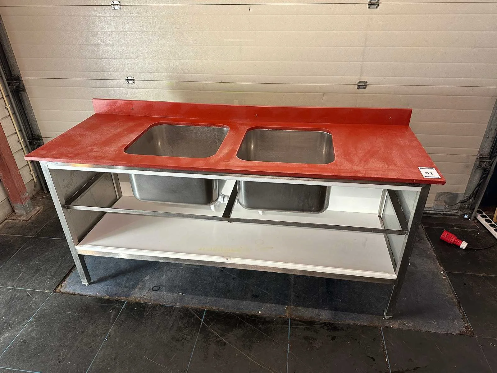 2 wasbakken ; mist 1 pootje ; 2000x700x930 Merk: Blokvlak