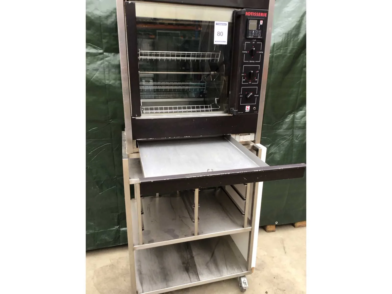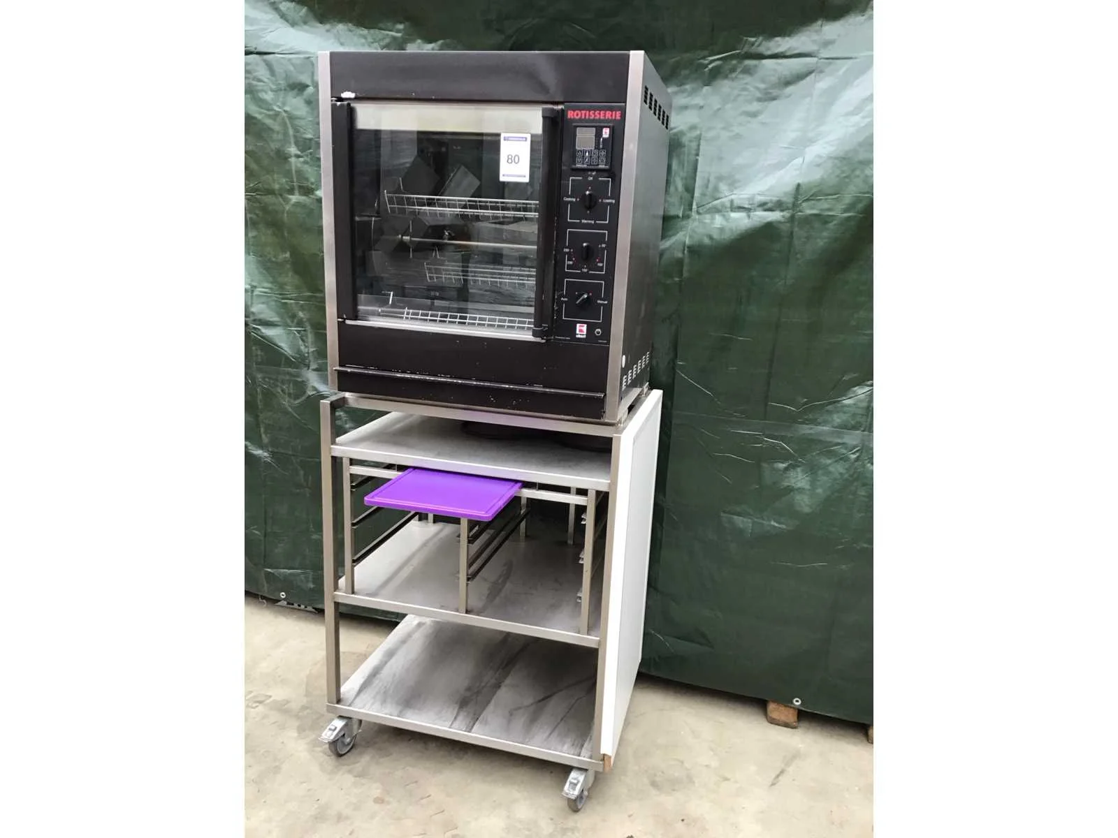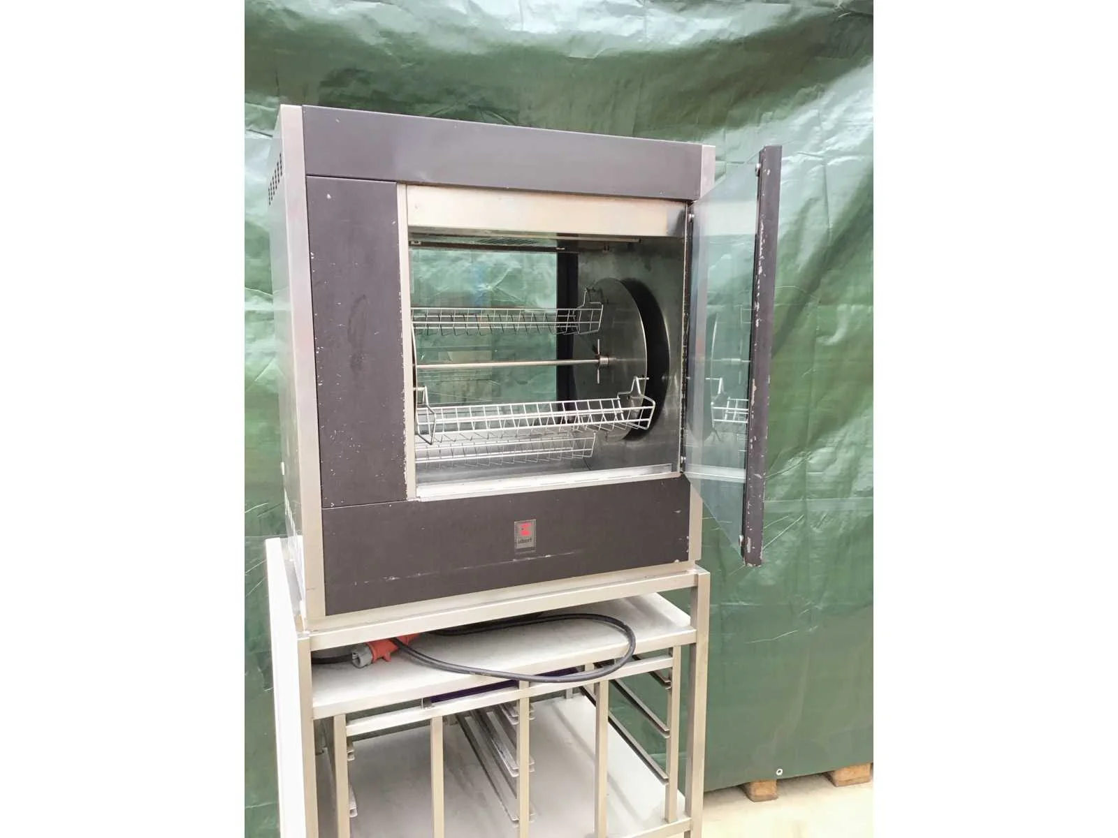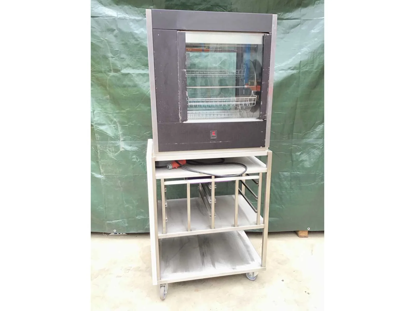 Voorzien van mobiel onderstel ;5kW 400V ; Beperkt getest maar werkt naar behoren bij het aansluiten op stroom Merk: Ubert Rotisserie Elektrisch verwarmd: true Aansluiting: 380V Totale afmeting L: 850mm Totale afmeting Breedte: 610mm Totale afmeting Hoogte: 1980mm