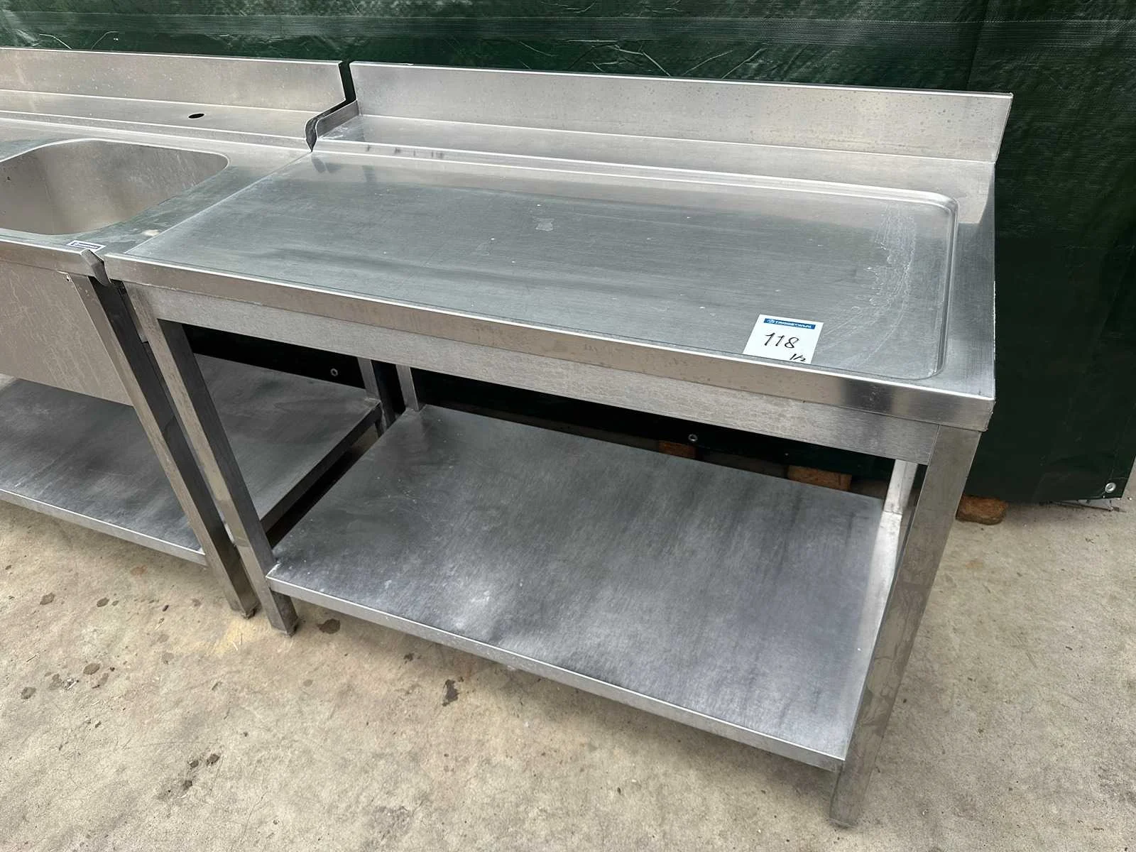 Aan afvoer tafel voor korte vaatwasser in het midden RVS