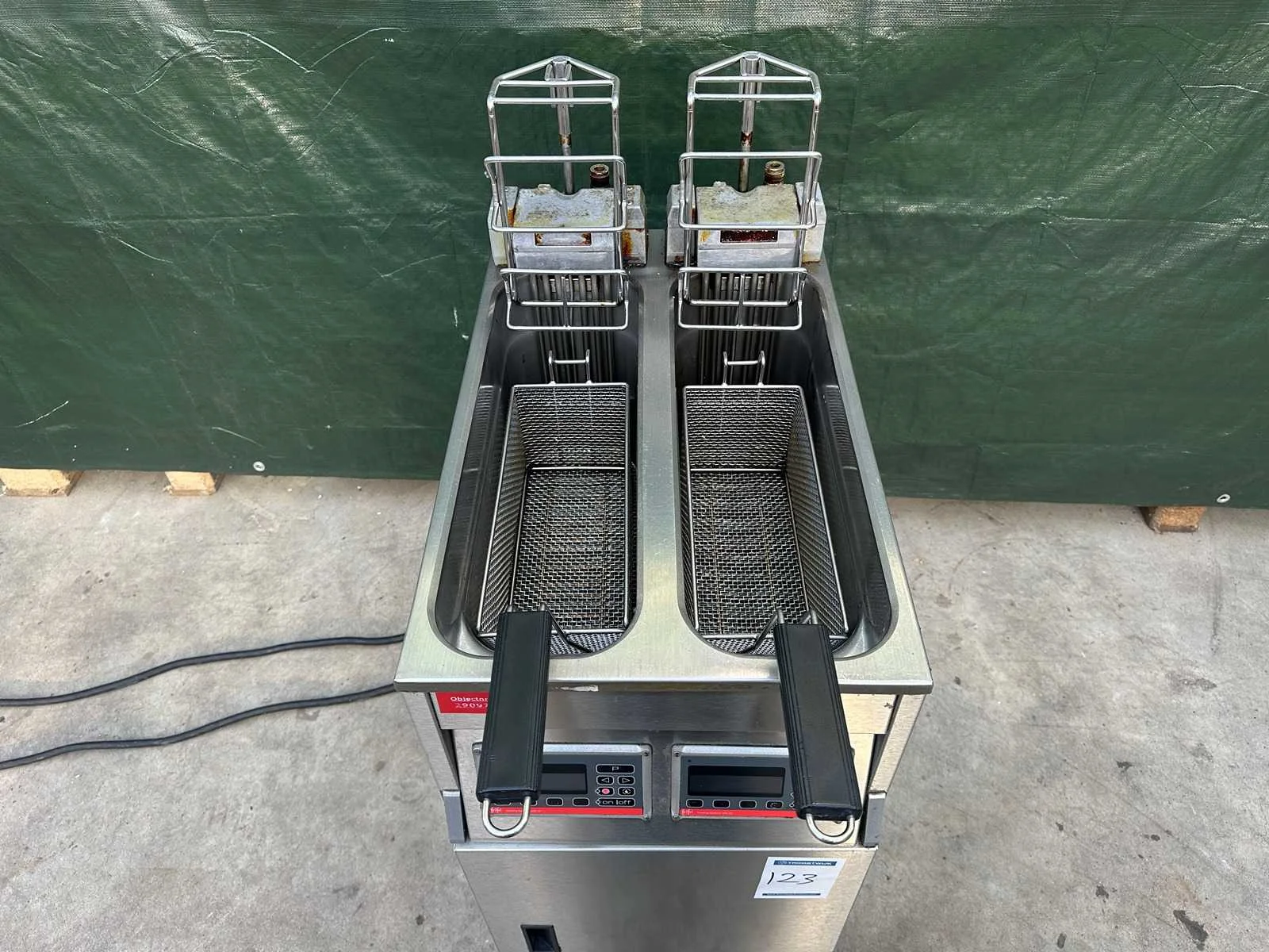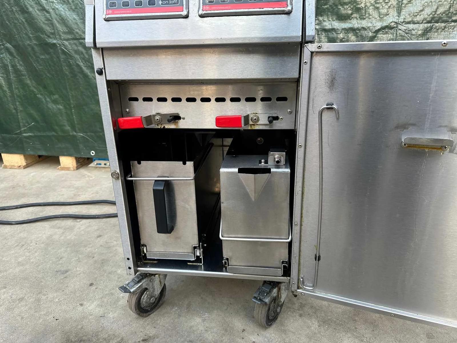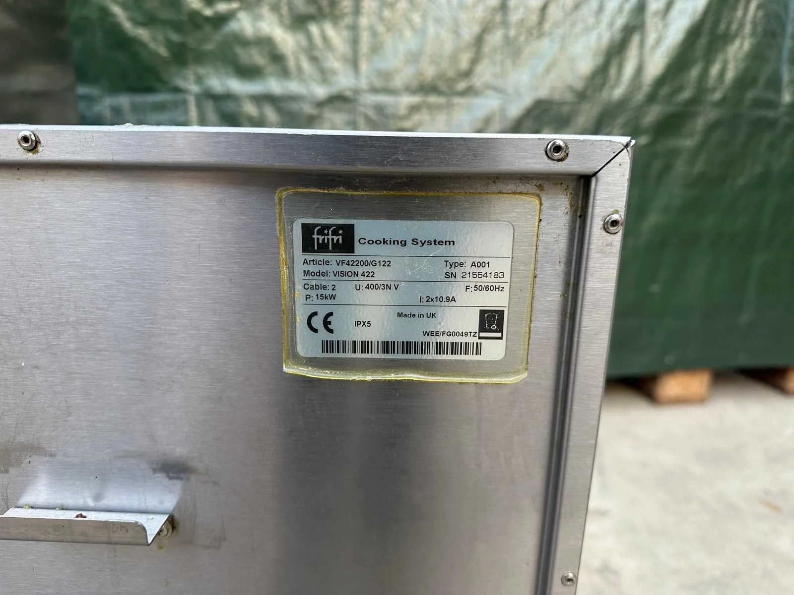2x400V stekker ; 2 uitlekbakken Merk: FriFri Model: Vision 422 Lengte: 40cm Breedte: 65cm Hoogte: 90cm Aantal zones: 2 Vermogen (kW): 15 Elektrisch: true Spanning: 400
