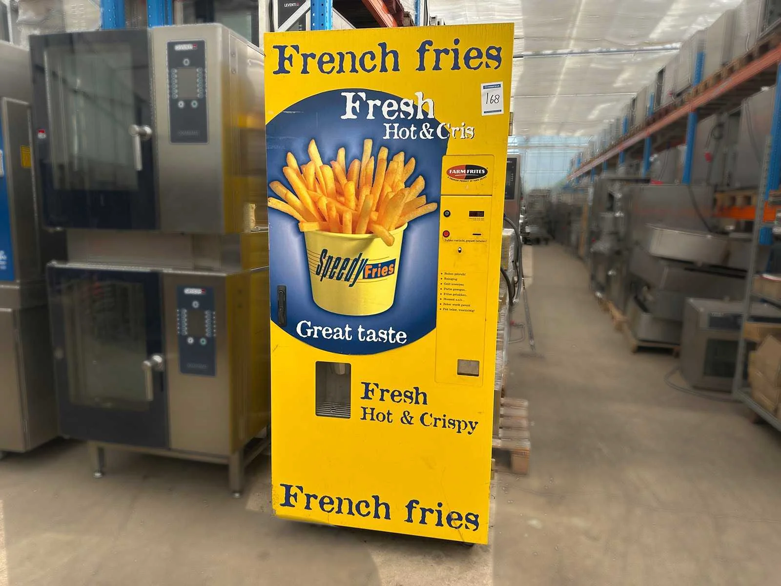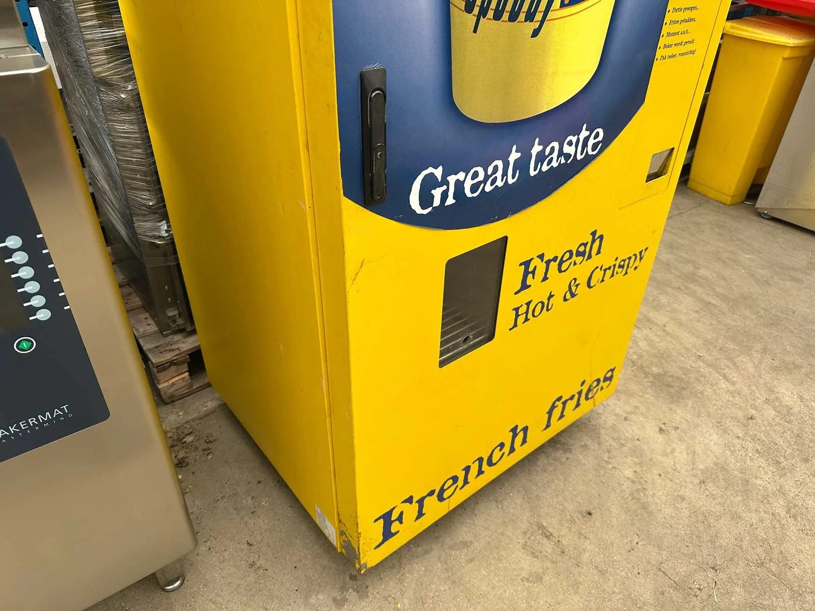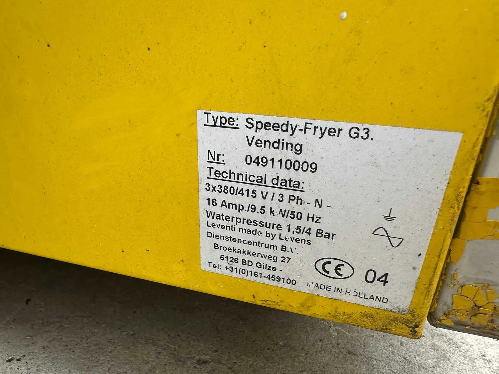 Franse frieten apparaat ; Speedy Fryer G3 vending ; Werking onbekend Merk: Leventi Type: Speedy Fryer G3 Totale afmeting L: 880mm Totale afmeting Breedte: 770mm Totale afmeting Hoogte: 2000mm