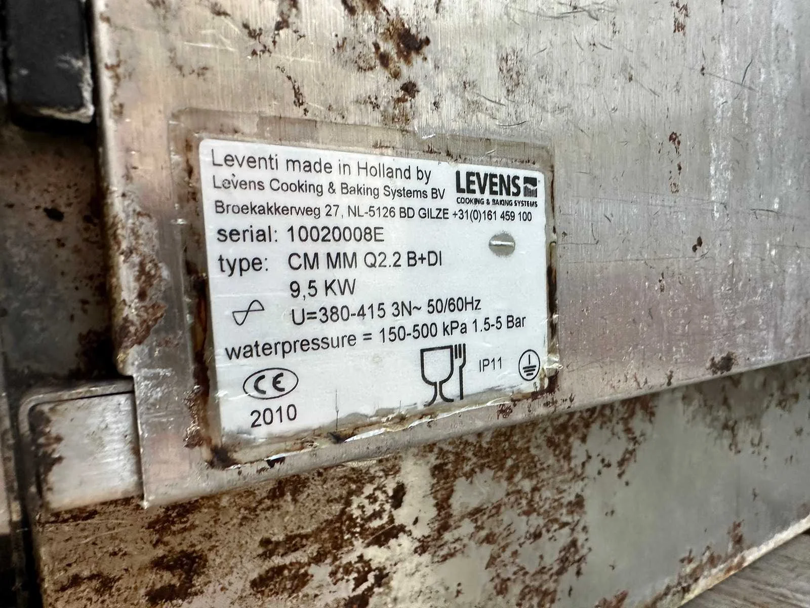 Merk: Leventi Type: Combimat Q2.2 B+DI Aantal niveau's: 6 Vermogen: 9500W Aansluiting: 380V Digitale besturing: true Gas: true Elektrisch: true Rvs: true Totale afmeting L: 97cm Totale afmeting Breedte: 85cm Totale afmeting Hoogte: 82cm