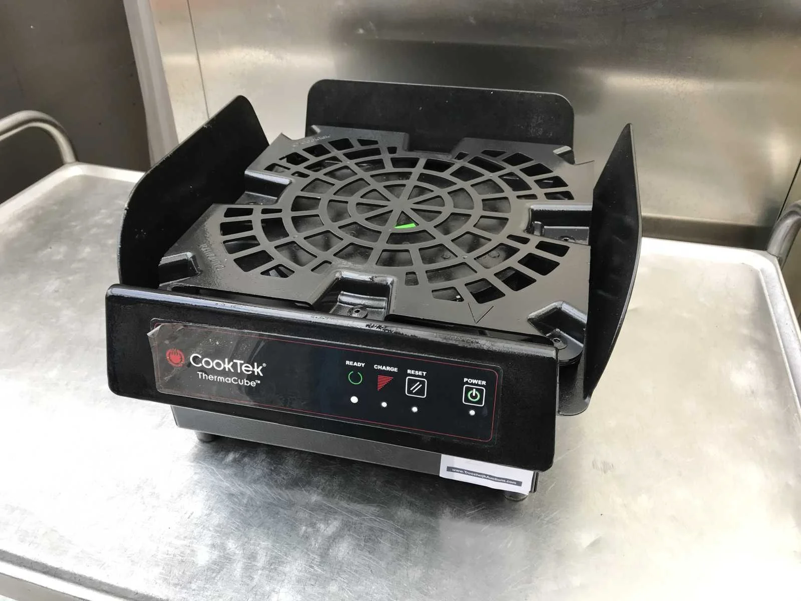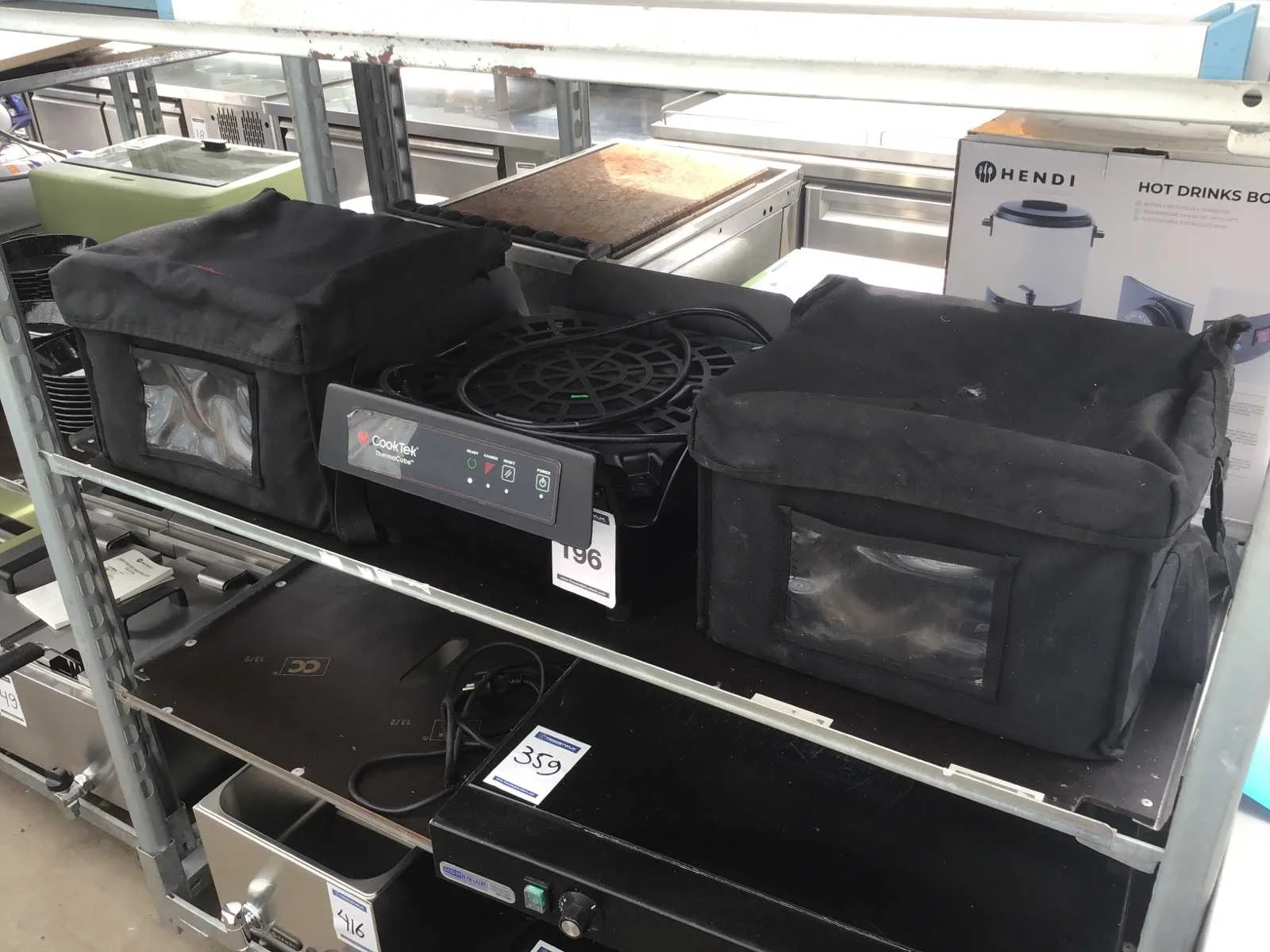 Niet getest ; Alleen charger met flashdisk en 2 tassen: bestaande uit Cooktek TCS200 ; De CookTek 609201 (TCS200) ThermaCube™ Delivery System is een apparaat ontworpen voor het efficiënt en veilig verwarmen van voedsel. Het systeem is beschikbaar in een vermogen van 1,800 watt en is ontworpen om te voldoen aan de behoeften van zowel horeca- als commerciële toepassingen. Opwarming door middel van inductietechnologie Tot 30 minuten constante temperatuur Geschikt voor o.a. friet, broodjes, snacks etc. Vermogen: 1,800 watt. Bezorg nooit meer koud of vochtig voedsel. Het Thermacube delivery Charger van Cooktek biedt ongeëvenaarde prestaties in het behouden van de temperatuur en het controleren van de luchtvochtigheid. De Thermacube inductie bezorgtas is zo ontworpen om voedsel tot 30 minuten op temperatuur te houden. !!!Let op: exclusief tas, dit is alleen de charger met flashdisk .!!! Totale afmeting Hoogte: 21cm Vrijstaand: true Aansluiting: 230V