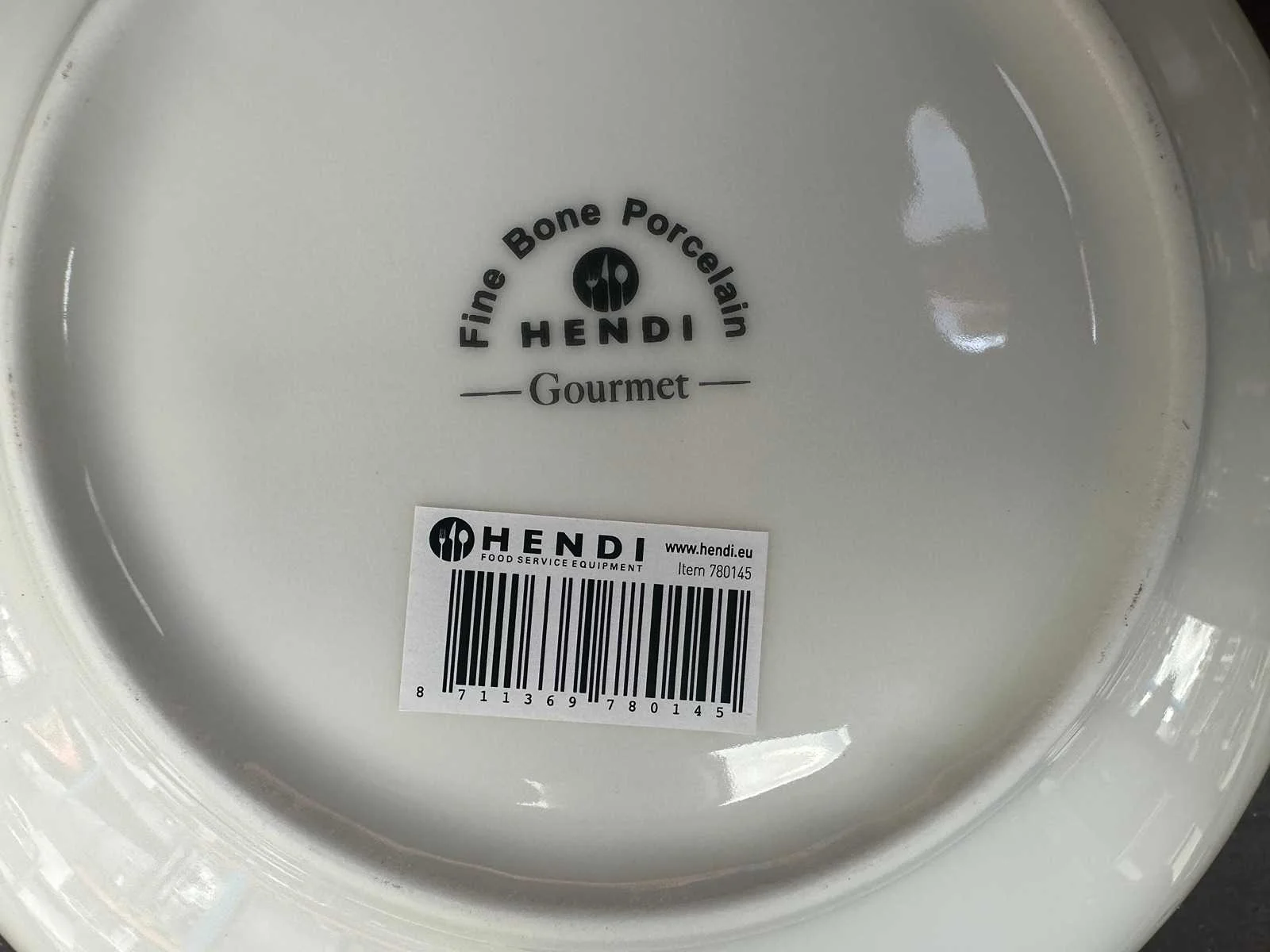 Merk: Hendi Type: Gourmet Totale afmeting L: 250mm Totale afmeting Breedte: 250mm Totale afmeting Hoogte: 95mm Materiaal: Porselein