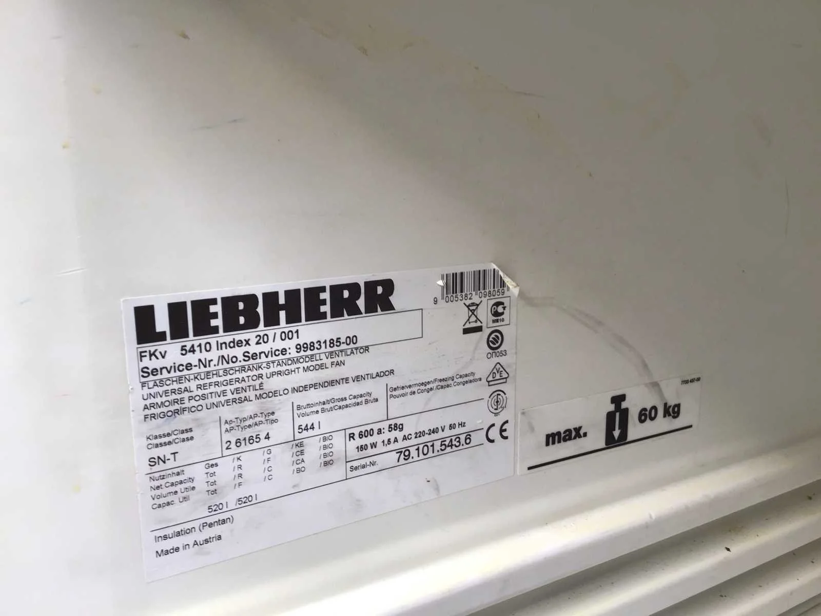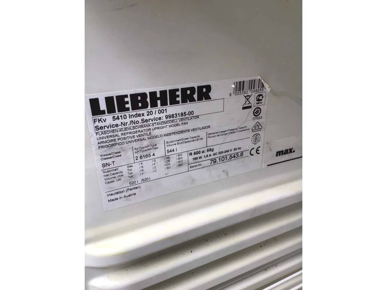 3 rekken Merk: Liebherr Aansluiting: 230V