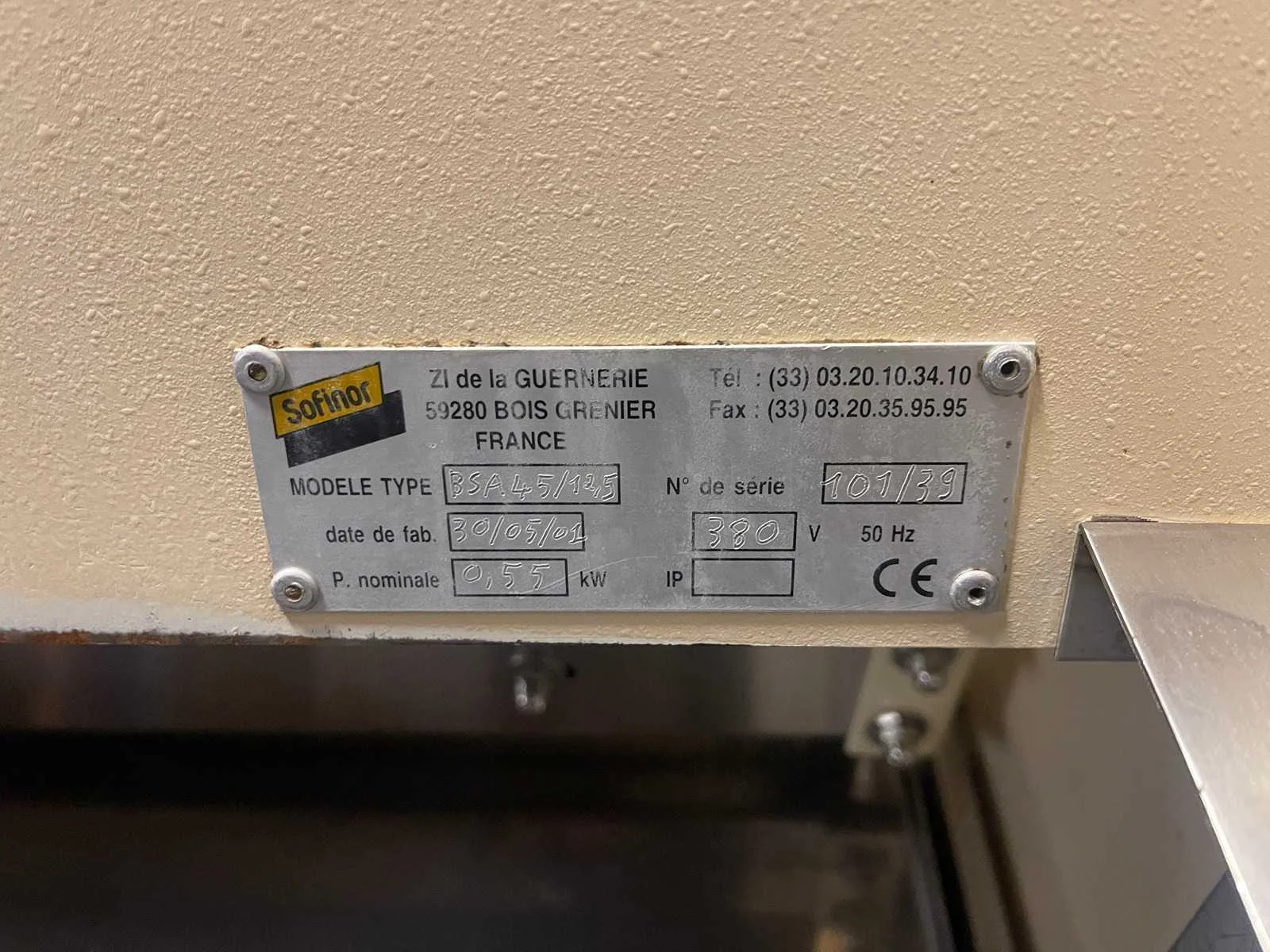 Met lade ; Merk: Sofinor Type: VL-40 Aansluiting: 380V Totale afmeting L: 660mm Totale afmeting Breedte: 660mm Totale afmeting Hoogte: 1170mm