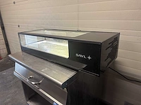 2 schuifdeuren ; Met ingebouwde afvoer ; Inclusief LED-verlichting ; zonder voeten ; 2 tot 6 ºC ; Logic Tapas 4B CP Merk: Sayl Type: Logic Tapas Ingebouwde koelcompressor: true Aansluiting: 220V Digitale uitlezing: true Totale afmeting L: 970mm Totale afmeting Breedte: 380mm Totale afmeting Hoogte: 250mm