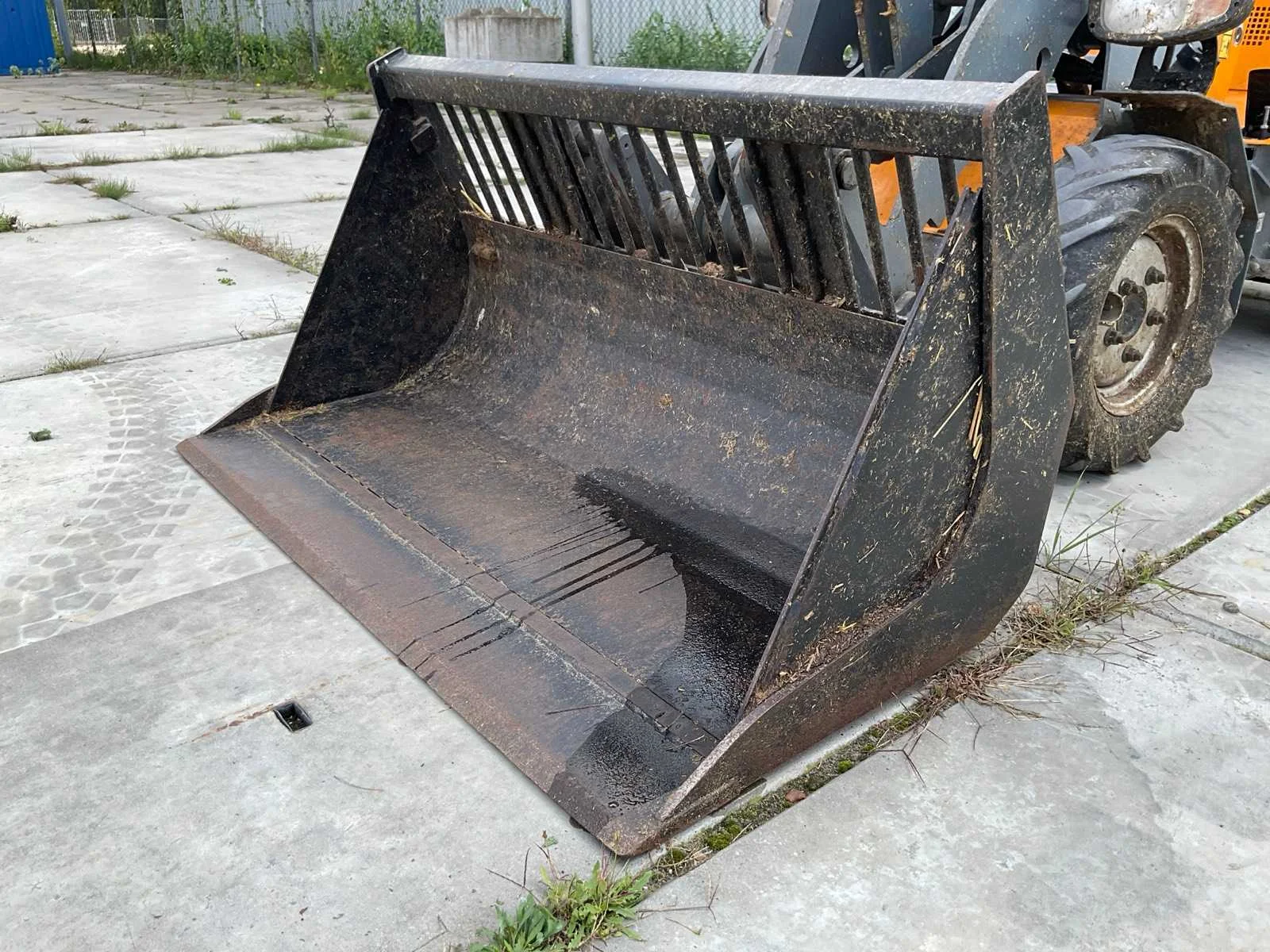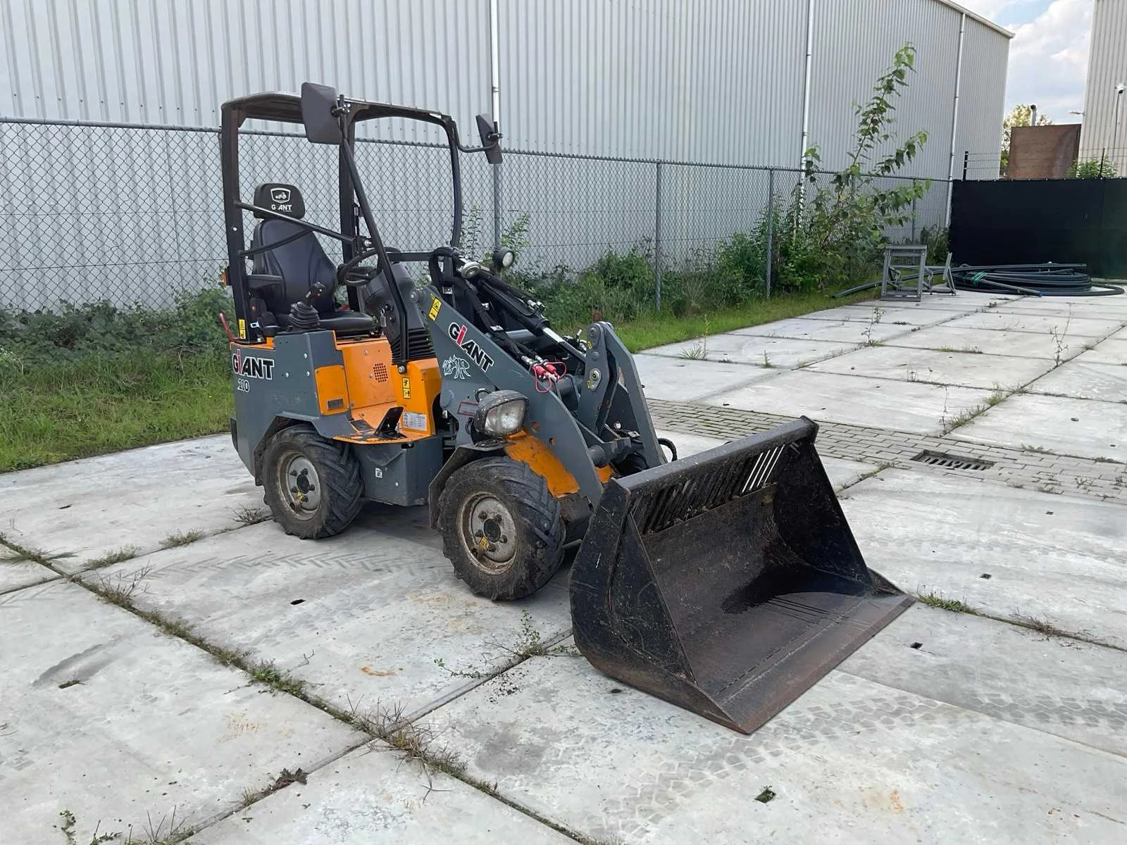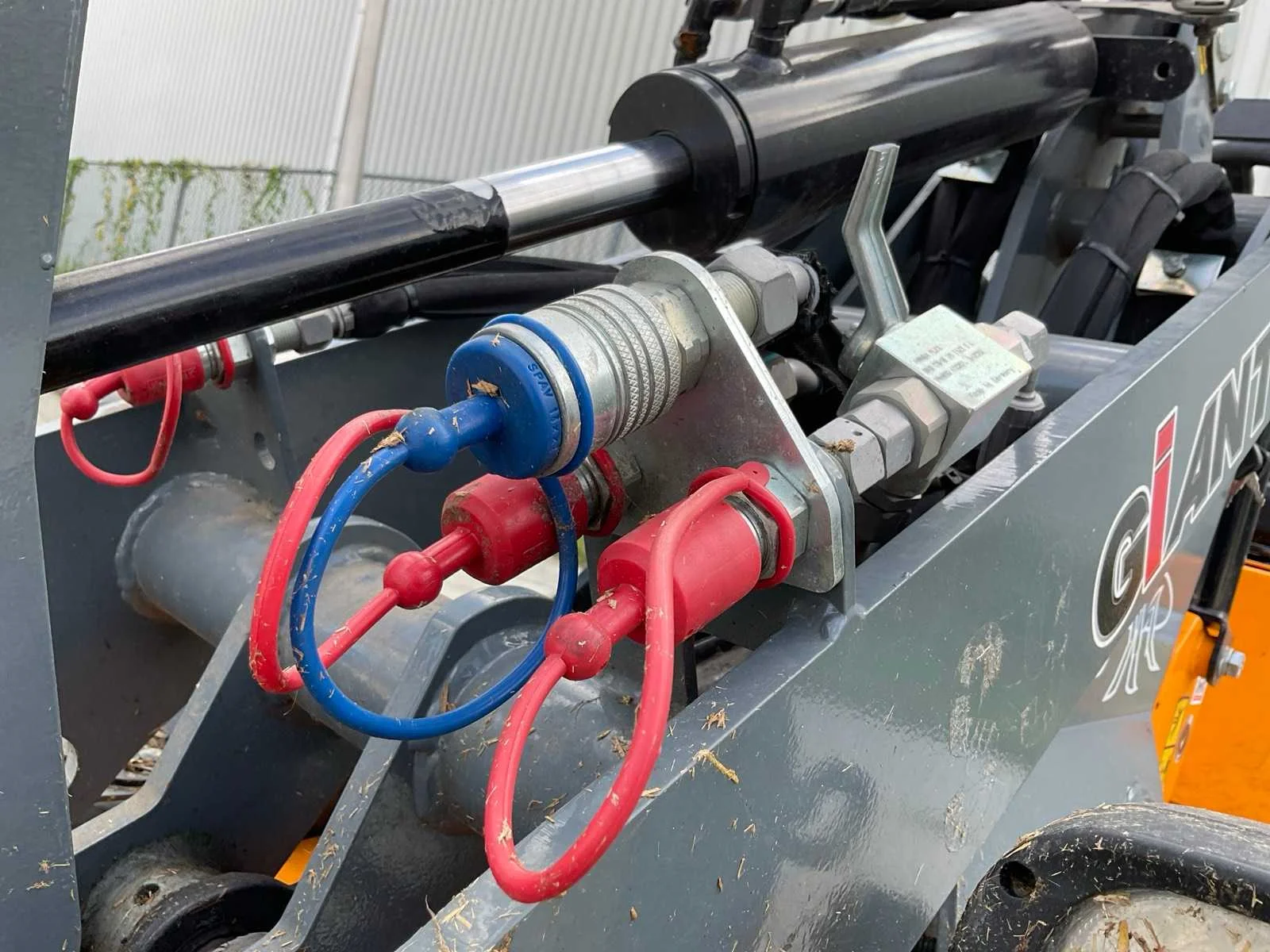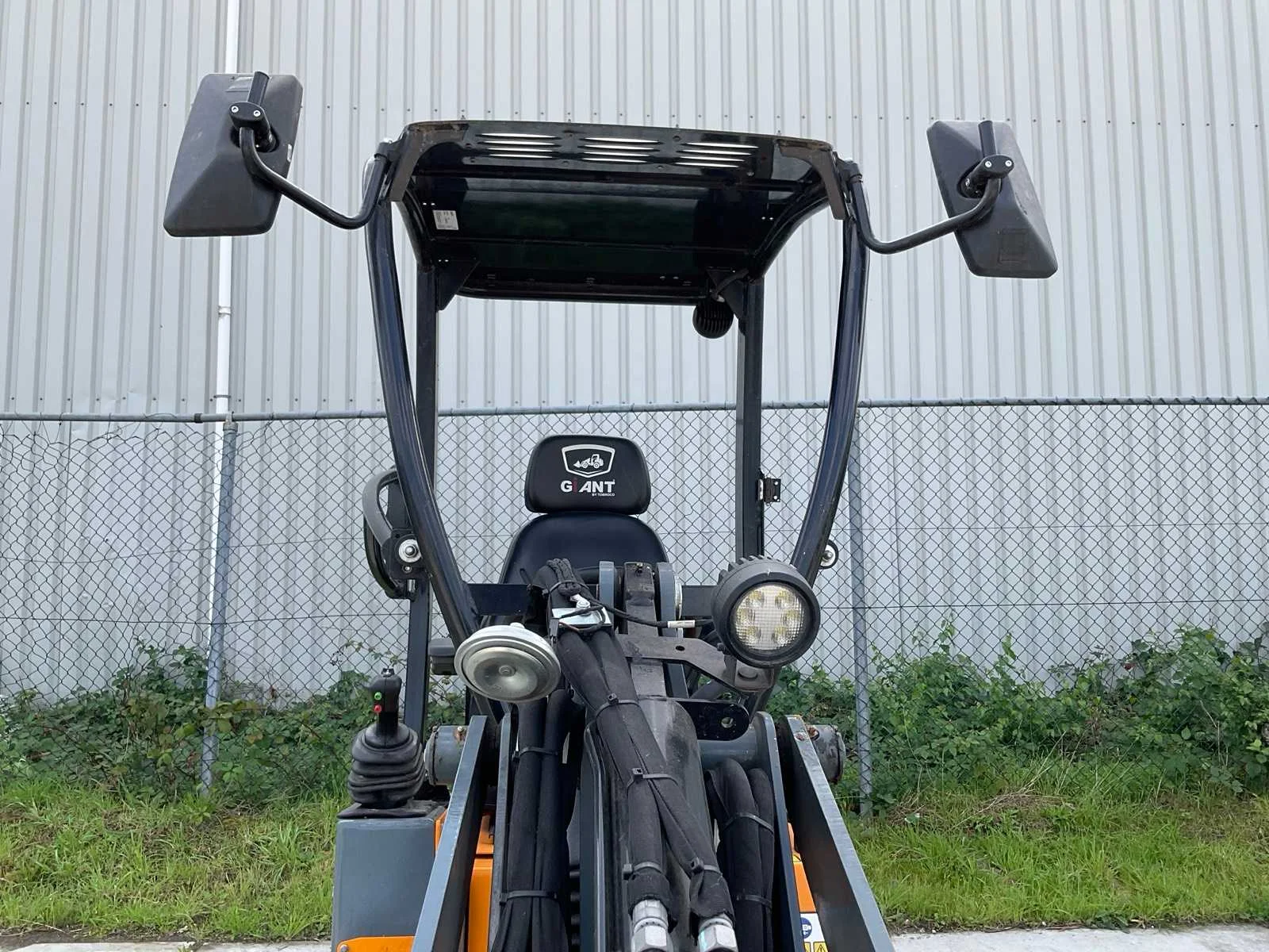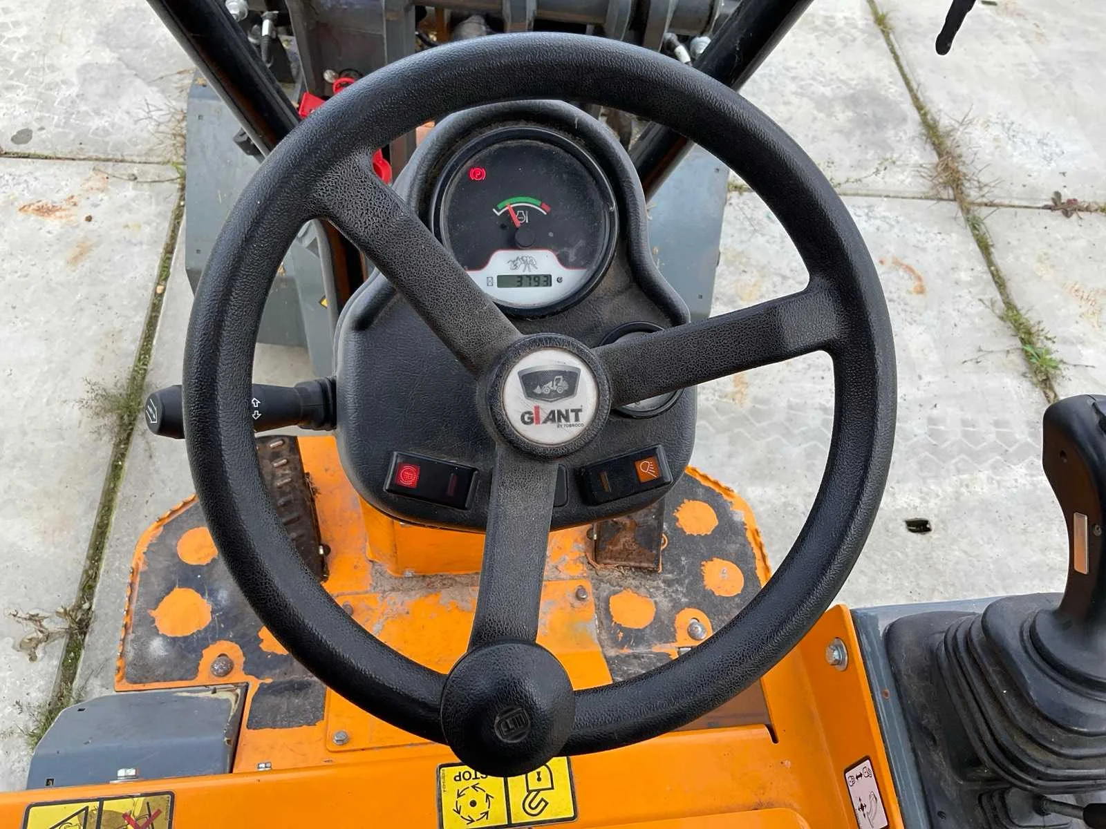 Puinbak met inlegplaat, hydraulische snelwissel, verlichting, 2x dubbelwerkende hydraulische functie aan giek met lekleiding, contragewicht met trekhaak, elektrische differentieel inschakeling, Merk: Giant Type: G1200 Bouwjaar: 2023 Serienummer: XP5G1B0A1PT038754 Merk motor: Kubota Kenteken: T-92-FJH Motorvermogen (kW): 18.2kW Aantal cilinders: 3 Brandstof: diesel Bedrijfsgewicht: 1440kg Graafbak afm. l: 650mm Graafbak afm. b: 1300mm Graafbak afm. h: 600mm Bandenmaat: 23x8.50-12 BKT Afgelezen urenstand: 379 Totale afmeting L: 2850mm Totale afmeting Breedte: 950mm Totale afmeting Hoogte: 2000mm