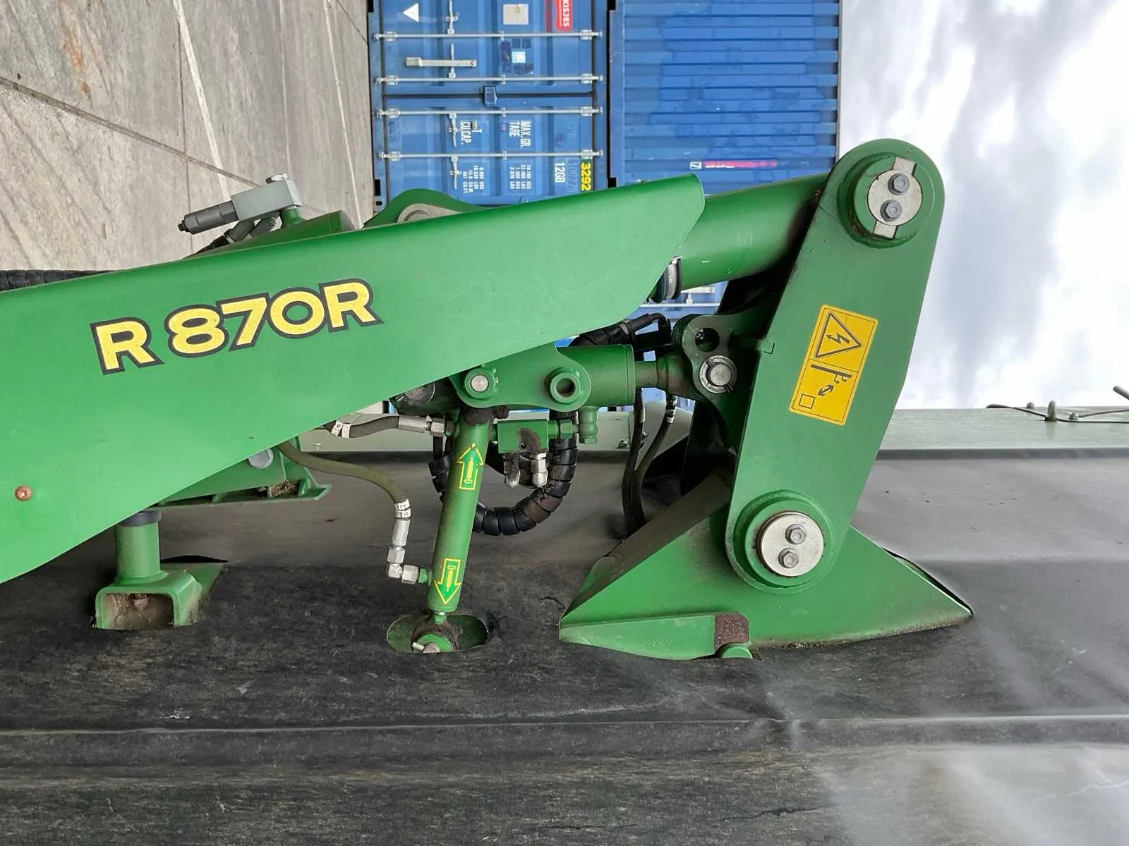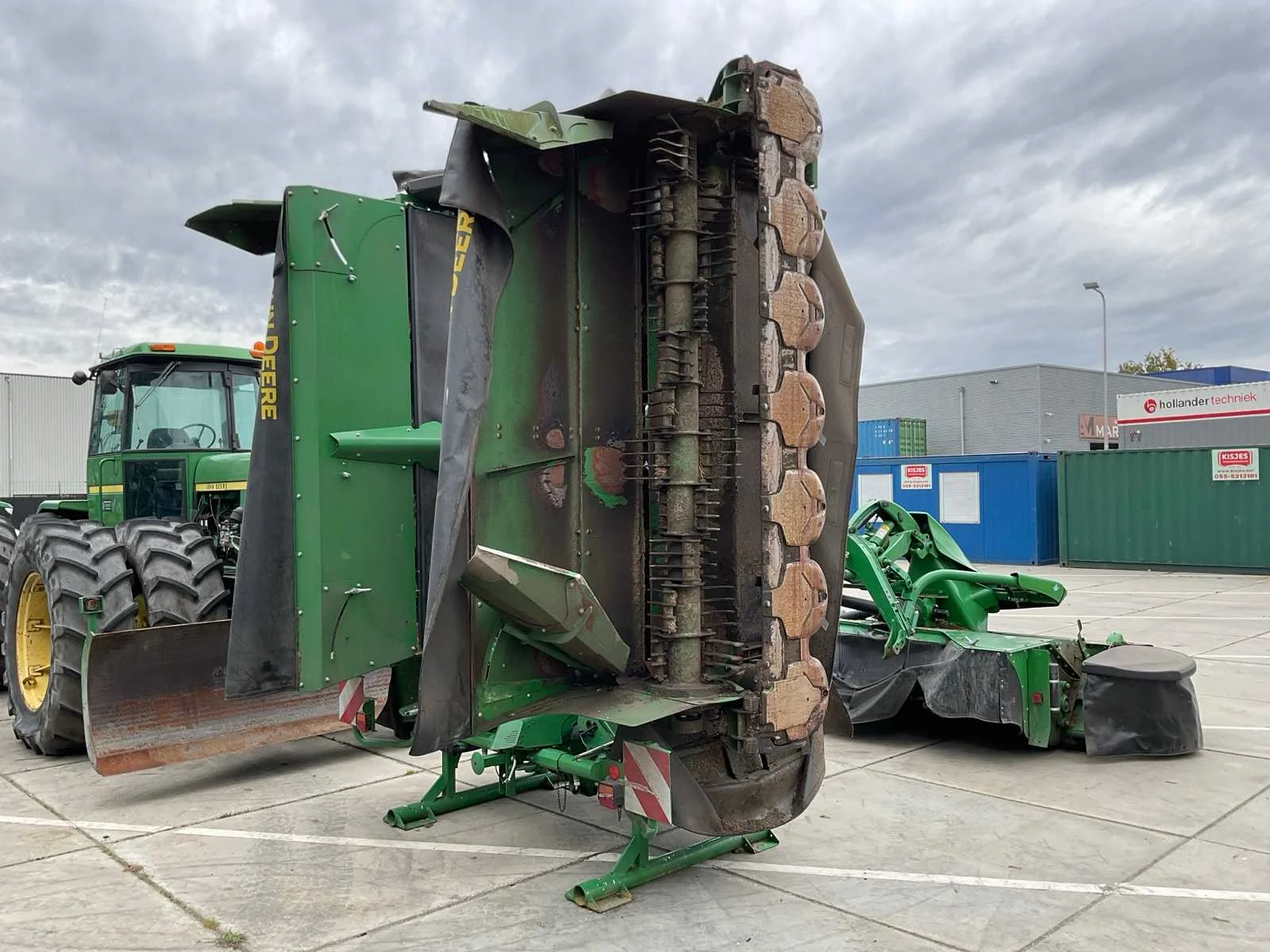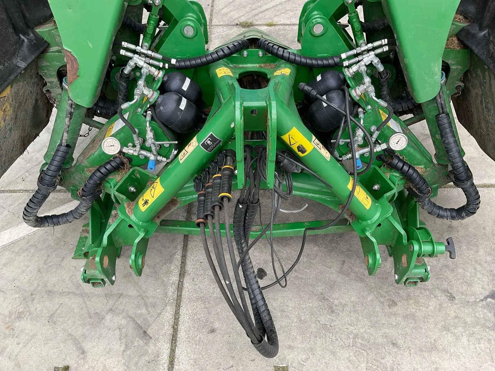 Frontmaaier 3000mm werkbreedte, zweefophanging met bodemontlasting, kneuzer inrichting, tandwielkast met hi/lo schakeling. Vlindermaaier, verstelbare werkbreedte 8300-8700mm, bodemontlasting systeem, tandwielkast met hi/lo schakeling, kneusinrichting, geen hef/topstang pennen, geen aftakas, geen bedieningspaneel achtermaaier Merk: John Deere Type: F310R + R870R Bouwjaar: 2019 Serienummer: 1CCF310XAKR292971 & 1CCR870XPKR293063 Werkbreedte: 8700mm Totale afmeting L: 2200mm Totale afmeting Breedte: 3300mm Totale afmeting Hoogte: 3750mm