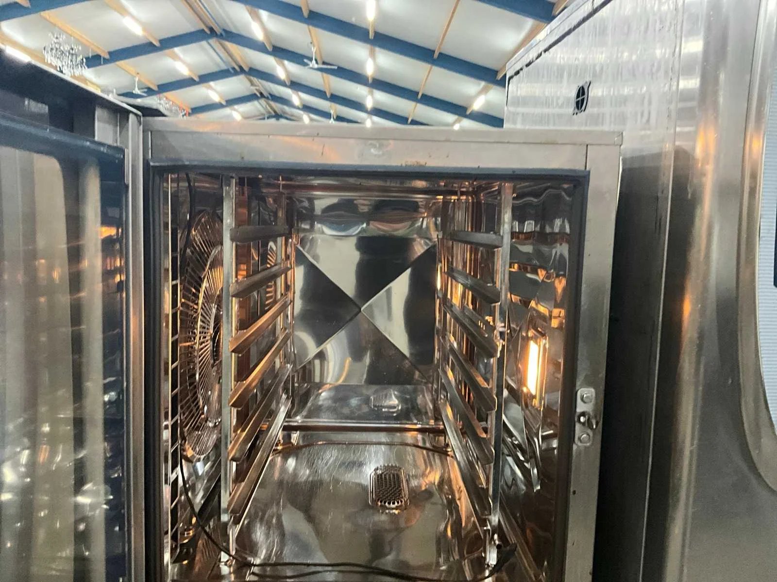 11 kw. ; voor 6 x 1/1 gn.; linksdraaiende deur Merk: Rational Type: SCC 61 E Aantal niveau's: 6 Vermogen: 11000W Aansluiting: 230V Elektrisch: true Rvs: true Totale afmeting L: 85cm Totale afmeting Breedte: 83cm Totale afmeting Hoogte: 83cm