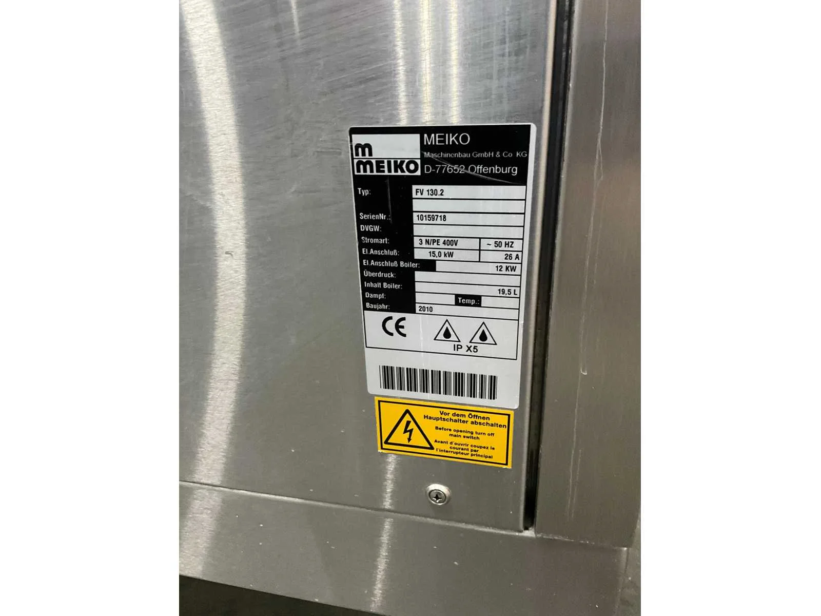 15 kw. Merk: Meiko Type: FV 130.2 Totale afmeting L: 103cm Totale afmeting Breedte: 90cm Totale afmeting Hoogte: 178cm Vermogen: 15kW Rvs: true Korf afmeting h: 140mm Korf afmeting l: 850mm Aansluiting: 400V Korf afmeting b: 690mm