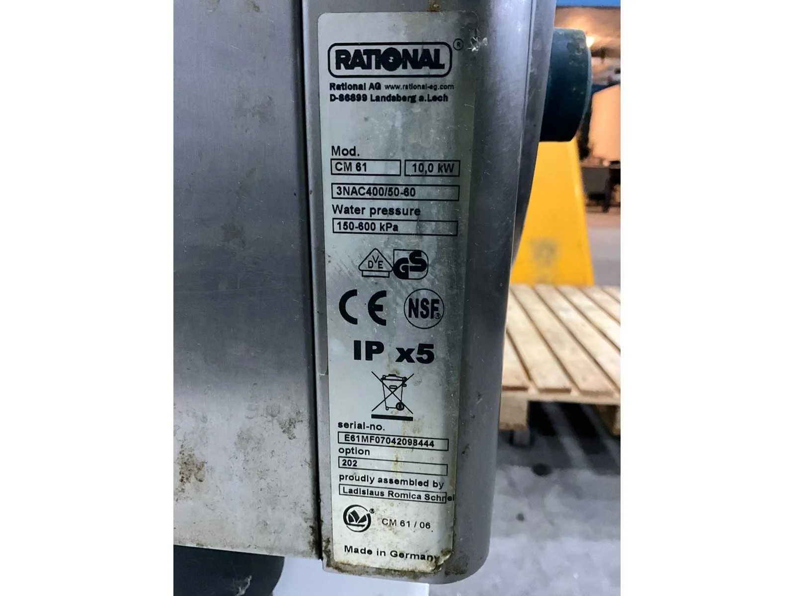 6x 1/1 GN ; linksdraaiende deur Merk: Rational Type: CM 61 Vermogen: 10000W Aansluiting: 400V Touchscreen bediening: true Elektrisch: true Totale afmeting L: 85cm Totale afmeting Breedte: 83cm Totale afmeting Hoogte: 83cm