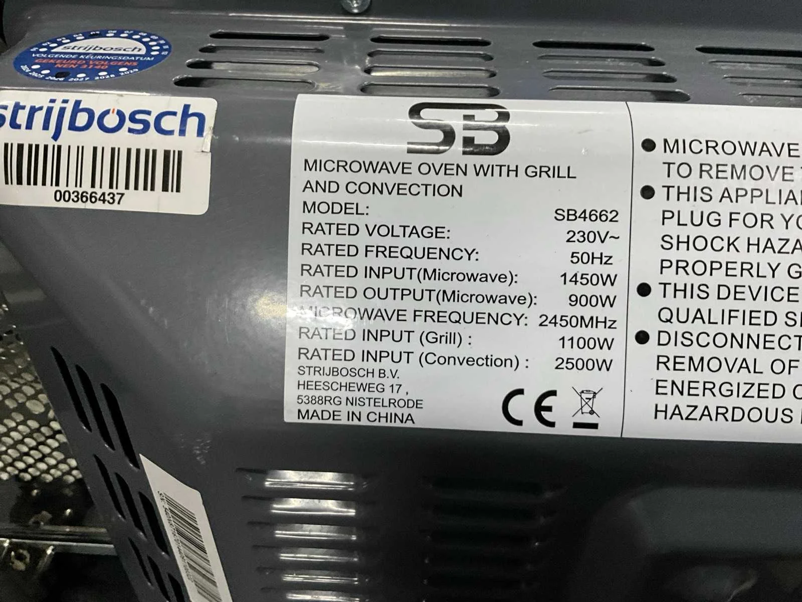 2500 watt. Merk: SB Type: SB4662 Totale afmeting L: 52cm Totale afmeting Breedte: 50cm Totale afmeting Hoogte: 33cm Vermogen: 2500W Aansluiting: 230V