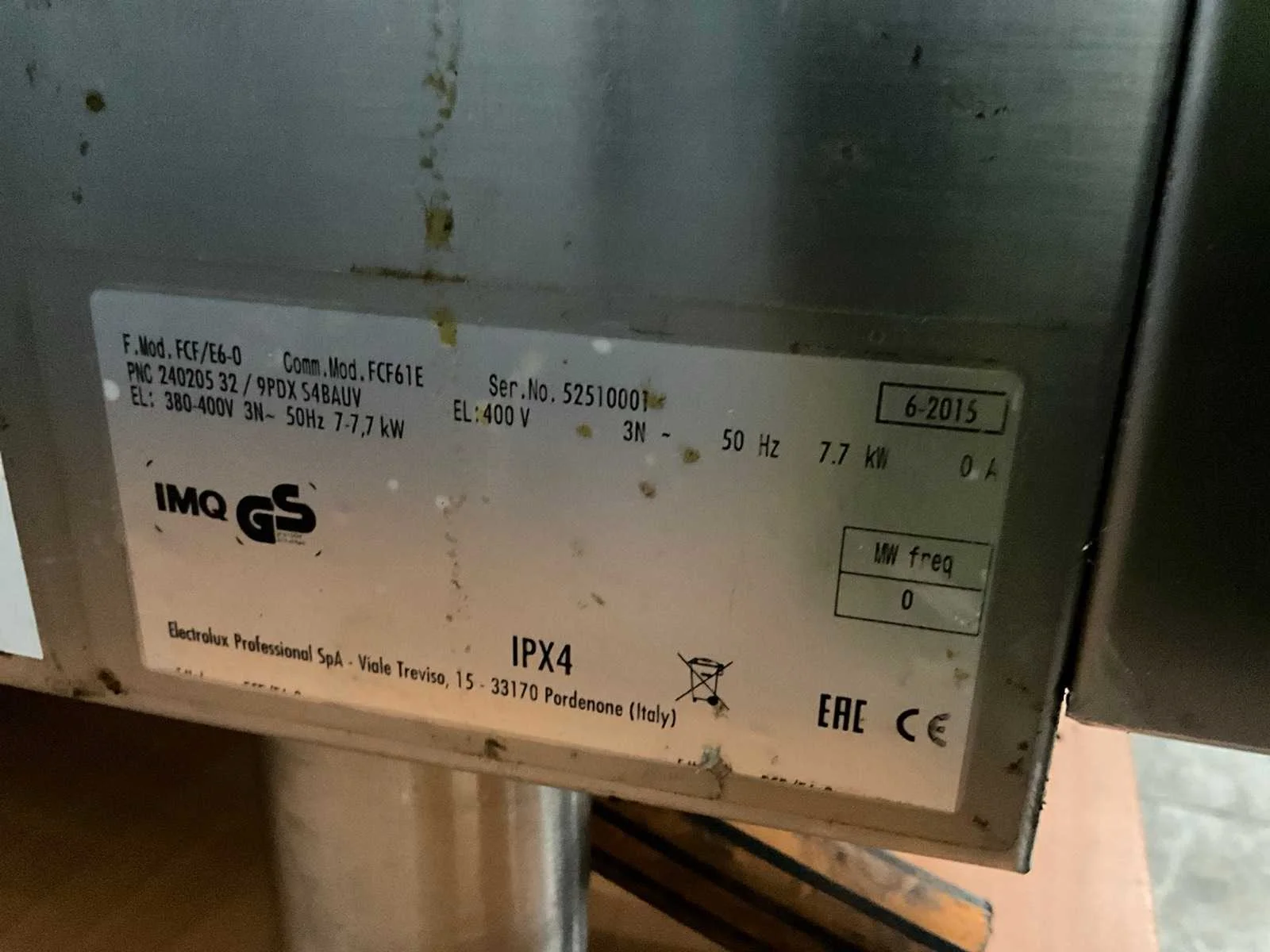 7,7 kw; voor 6-laags 1/1 gn. Merk: Zanussi Type: FCF/E6-0 Aantal niveau's: 6 Vermogen: 7700W Aansluiting: 400V Elektrisch: true Rvs: true Totale afmeting L: 87cm Totale afmeting Breedte: 82cm Totale afmeting Hoogte: 66cm