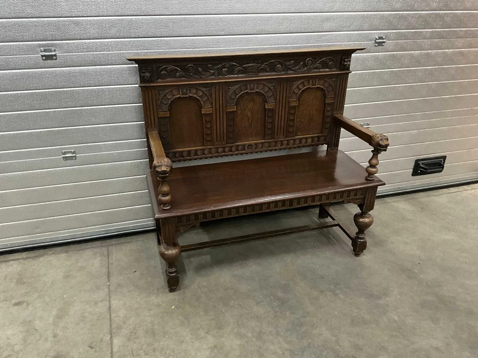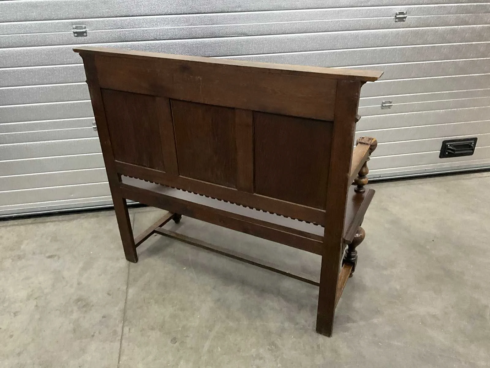 Voorzien van houtsnijwerk.; zithoogte 470 mm. Totale afmeting L: 1140mm Totale afmeting Breedte: 460mm Totale afmeting Hoogte: 1050mm Hout: true