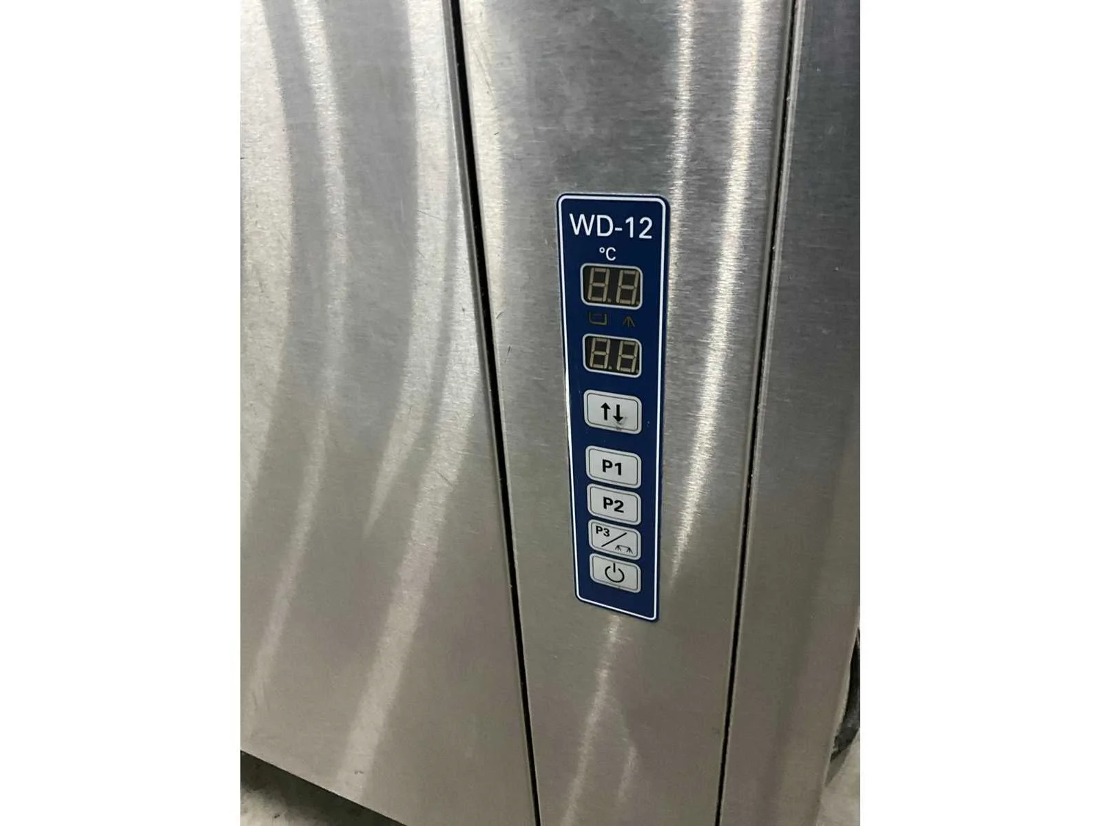 16,4 kw. ; voorzien van automatische kap. Merk: Rhima Type: WD-12GHE Totale afmeting L: 120cm Totale afmeting Breedte: 73cm Totale afmeting Hoogte: 185cm Rvs: true Korf afmeting l: 650mm Aansluiting: 400V Korf afmeting b: 1230mm