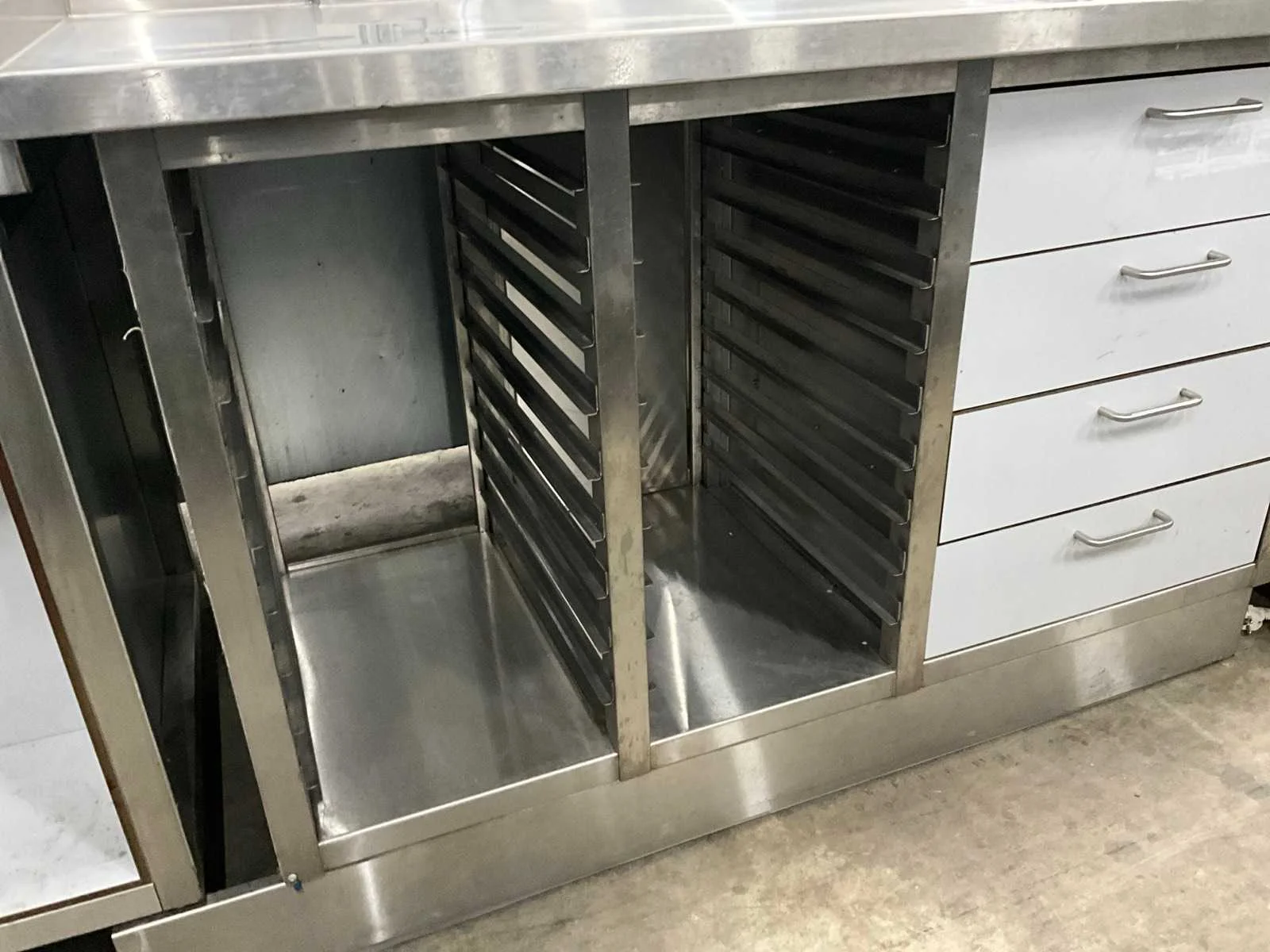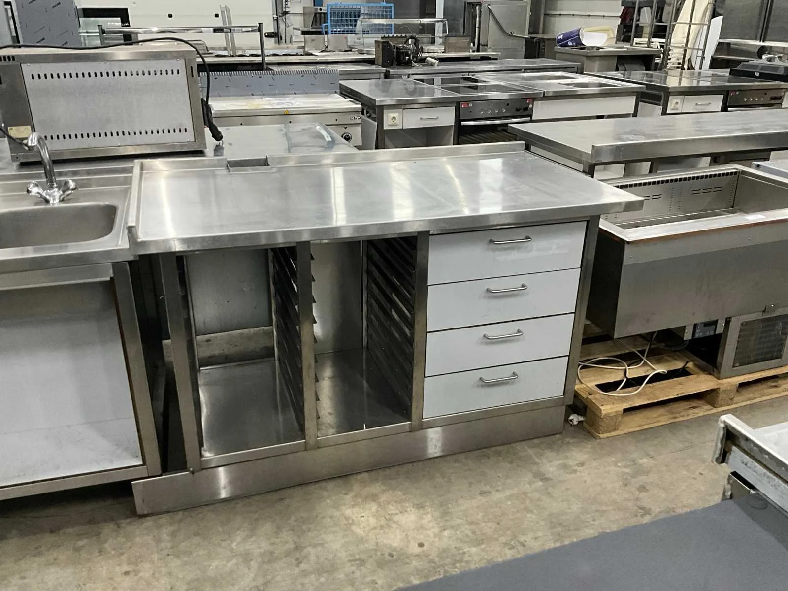 Voorzien van 2 x 9-laags 1/1 onderstel en 4 volkern kunststof lades. Totale afmeting L: 1550mm Totale afmeting Breedte: 800mm Totale afmeting Hoogte: 960mm