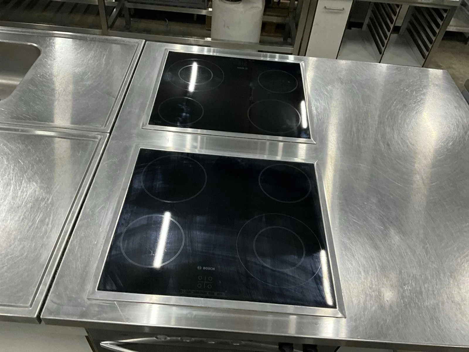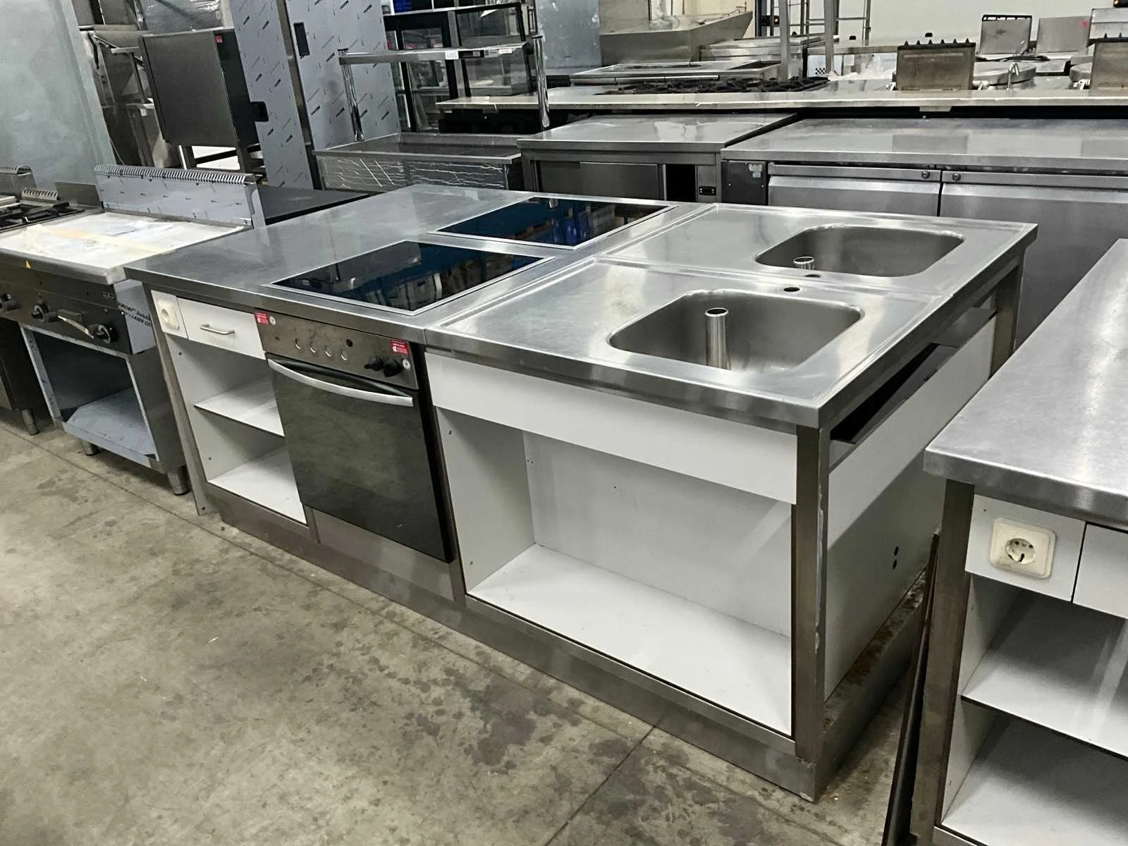 Voorzien van Bosch 4-pits kookplaat; Etna inbouw oven en dubbele spoelbak. Merk: Bosch & Etna Model: A 7300 Materiaal: rvs Totale afmeting Breedte: 2200mm Totale afmeting L: 1200mm Totale afmeting Hoogte: 900mm