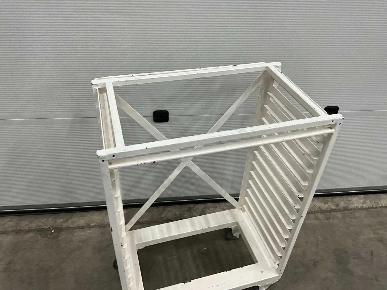 Verrijdbaar; voor 12-laags 63x37 cm. Lengte: 68cm Breedte: 40cm Hoogte: 103cm
