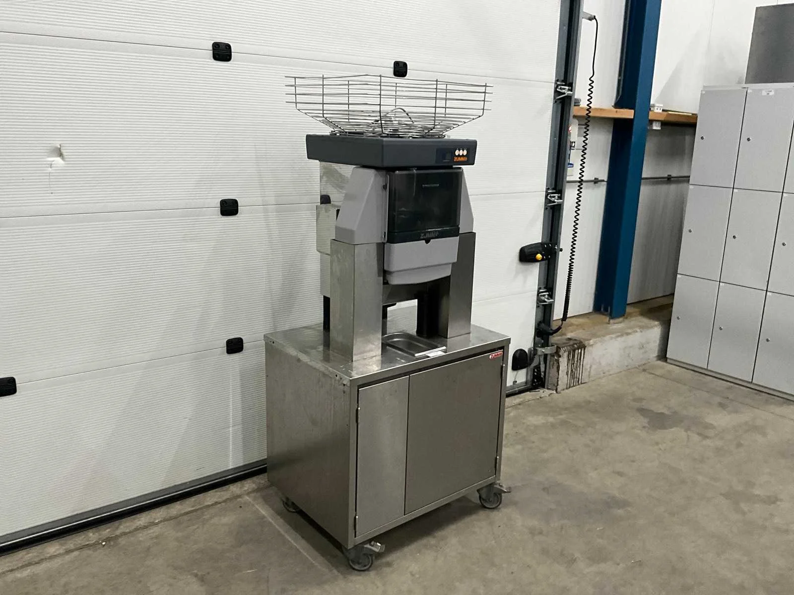 Verrijdbaar; 410 watt.; scherm is gebarsten en 1 arm voor het persen ontbreekt Merk: Zummo Type: Z-40A-N Totale afmeting L: 800mm Totale afmeting Breedte: 600mm Totale afmeting Hoogte: 1760mm Rvs: true Aansluiting: 230V