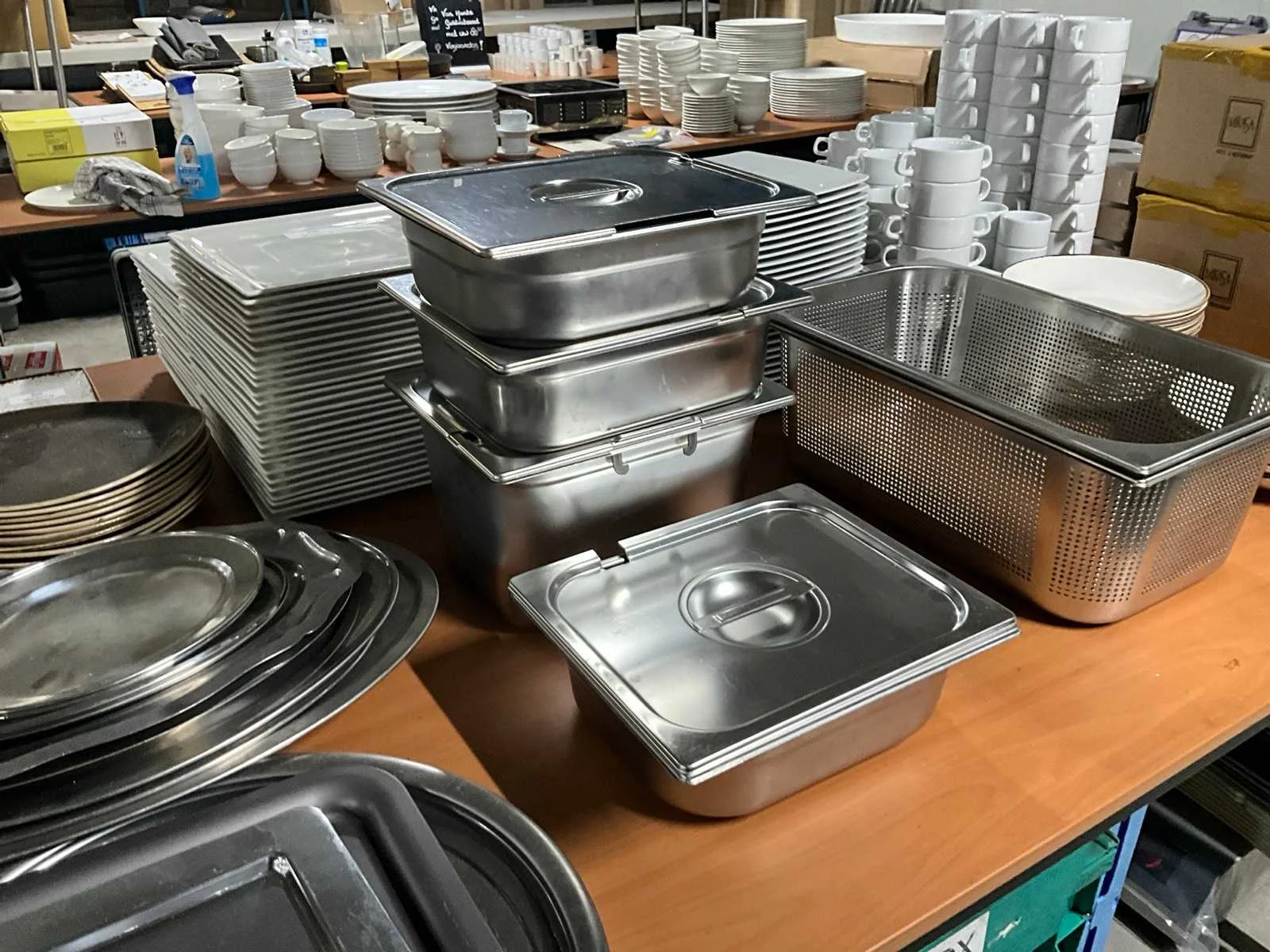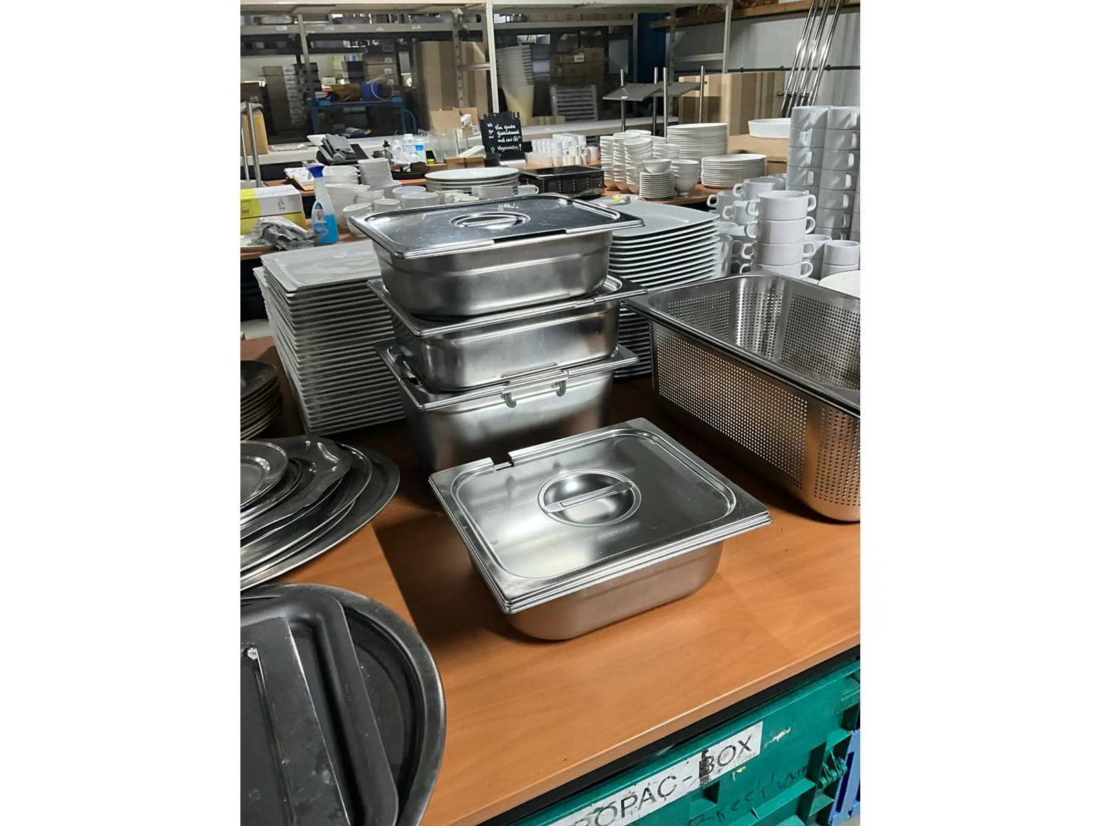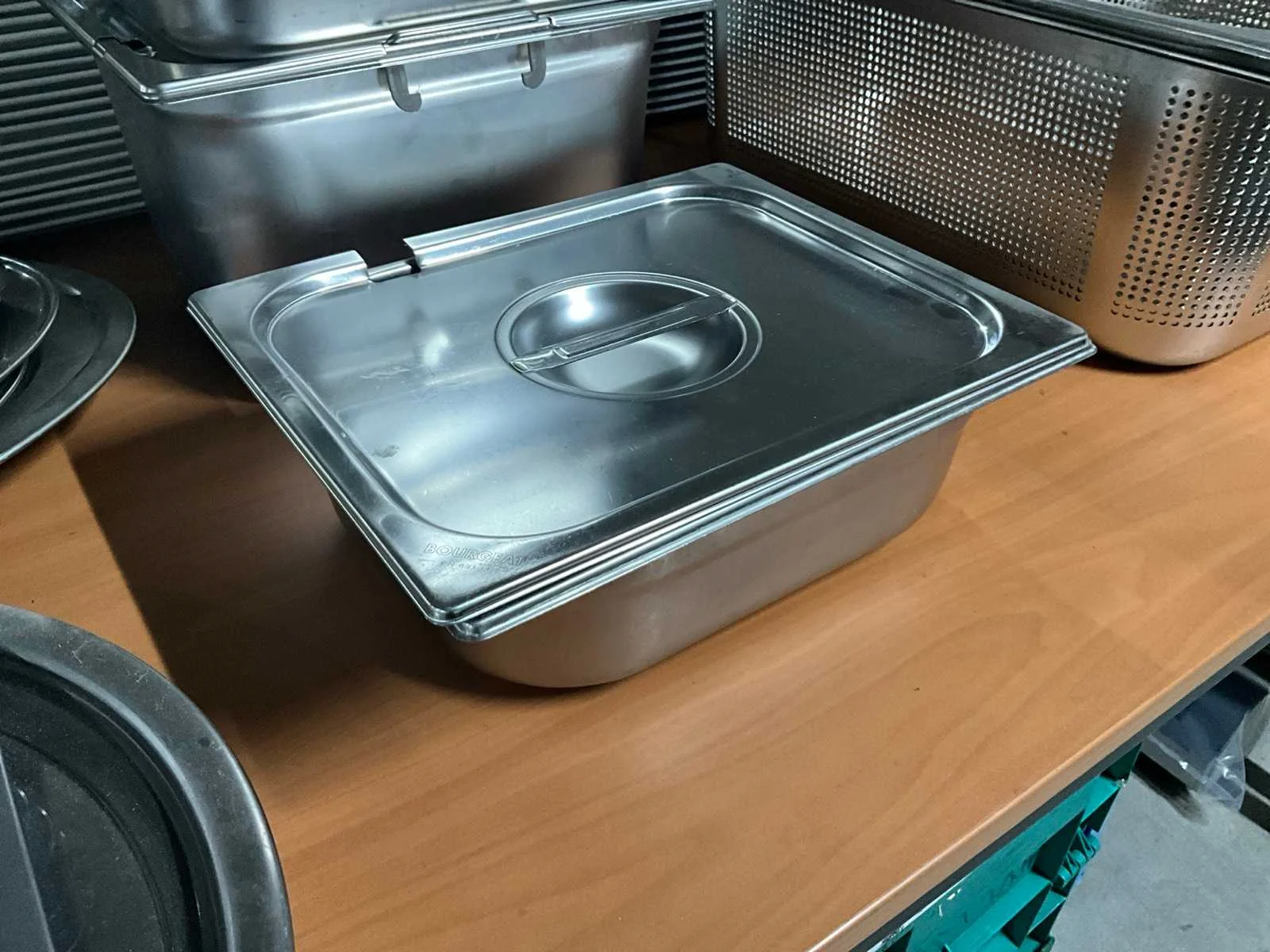 3 x 100, 1 x 200 mm. diep.; inclusief 4 deksels. Materiaal: rvs