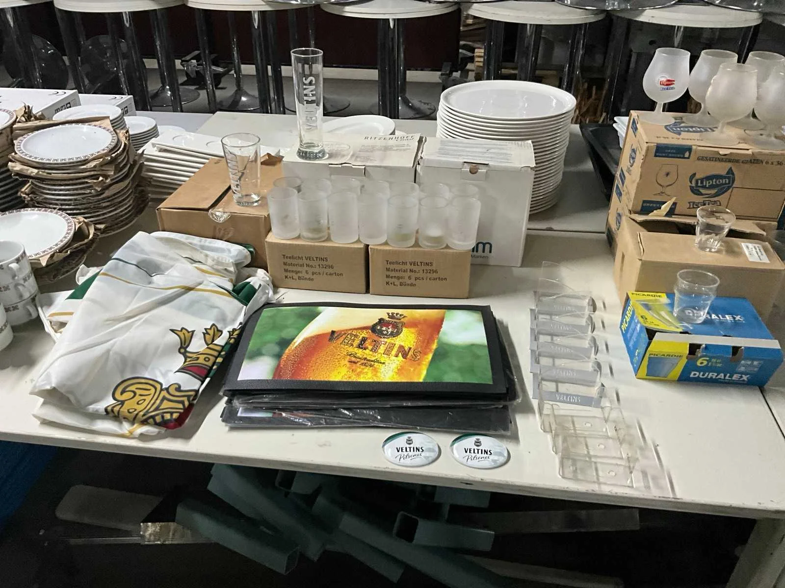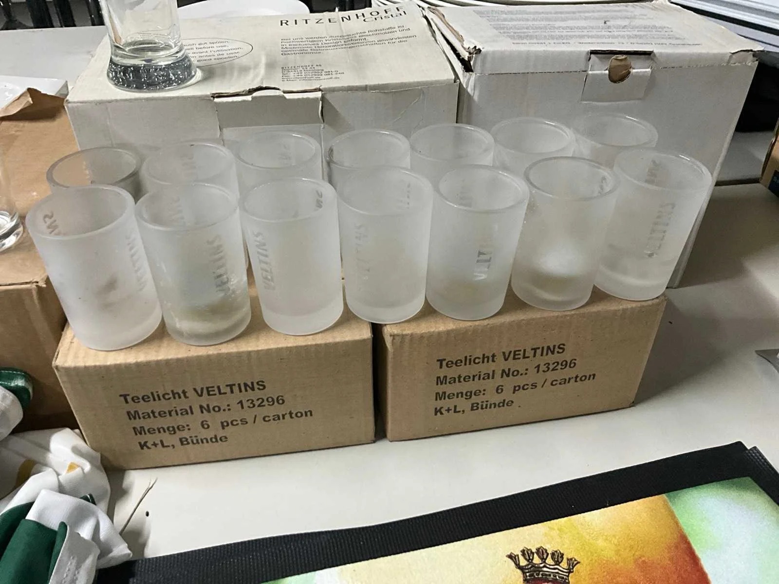 Vlaggen, glazen, barmatten en theelichthouders. Merk: Veltins