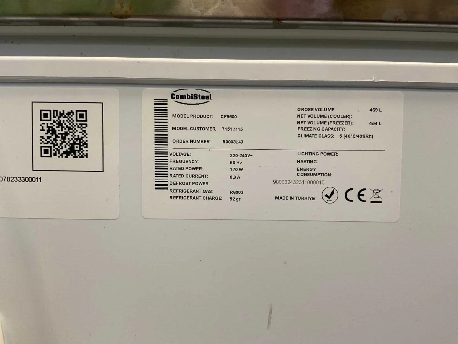 Merk: Combisteel Type: 7151.1115 Lengte: 149 Hoogte: 84 Breedte: 65 Aansluiting: 230V Capaciteit.: 454l