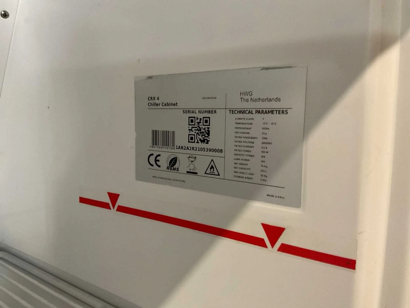 Merk: HWG Type: CRX 4 Lengte: 60 Hoogte: 188 Breedte: 63 Temperatuurbereik max.: 8°c Temperatuurbereik min.: 0°c