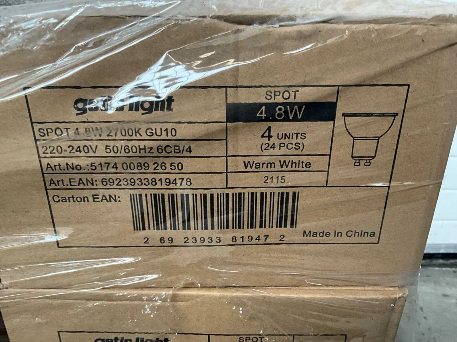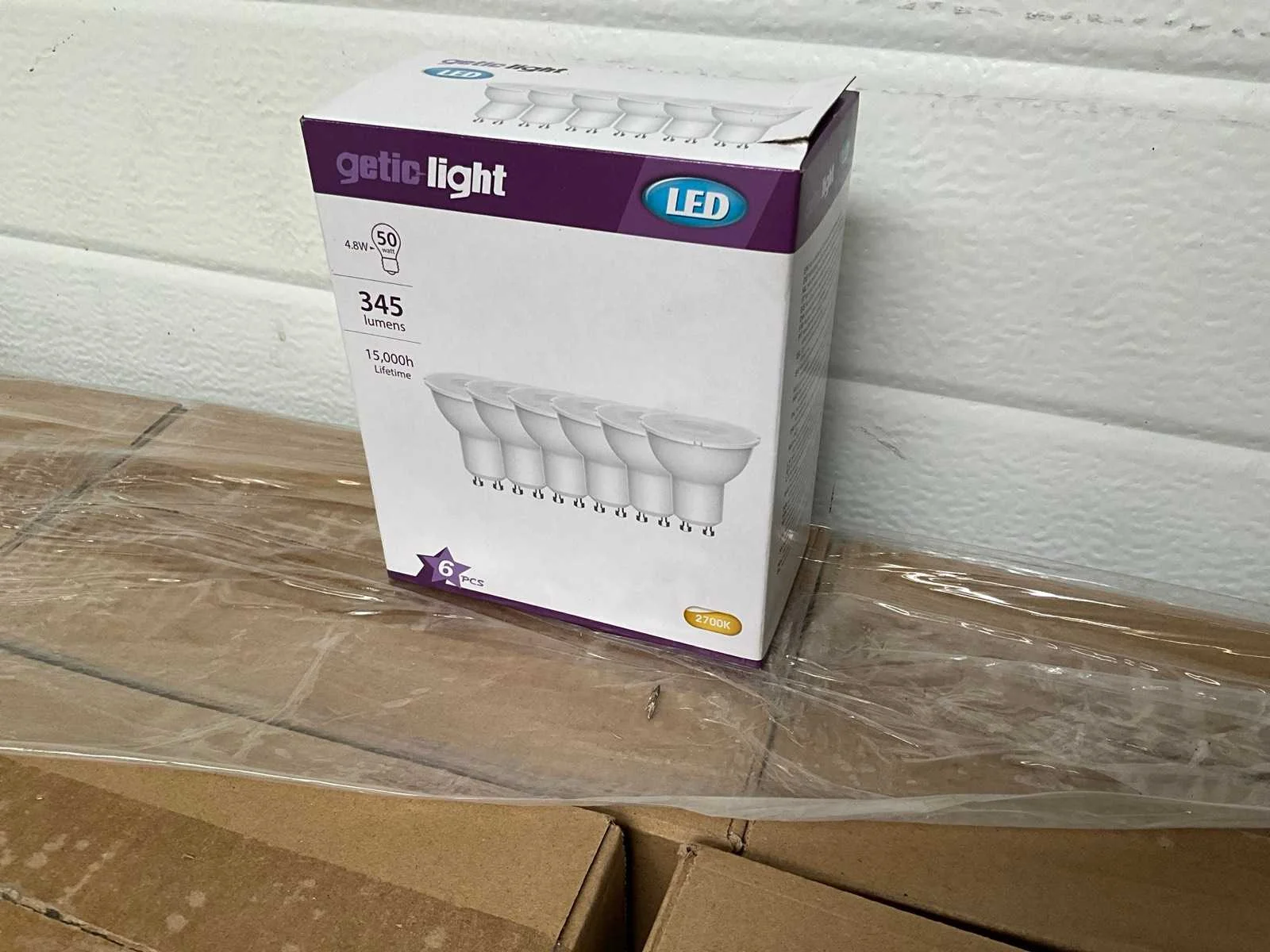 Ongebruikt in originele verpakking. Merk: Getic light Spanning: 240V Kleurtemperatuur: 2700K Lichtopbrengst: 345lm Diameter circa: 5 Energielabel: A+ Fitting: GU10 Wattage: 4.8W Kleur: Wit Lengte: 5.5cm Breedte: 5cm