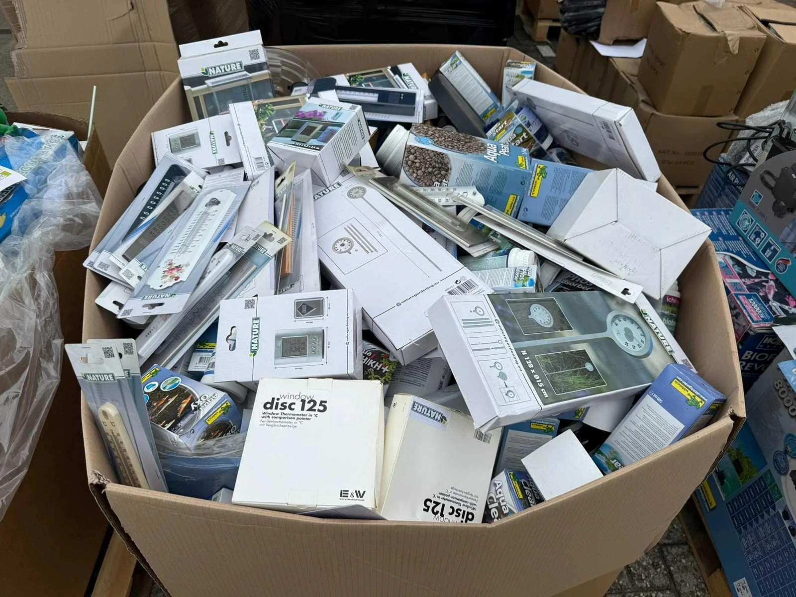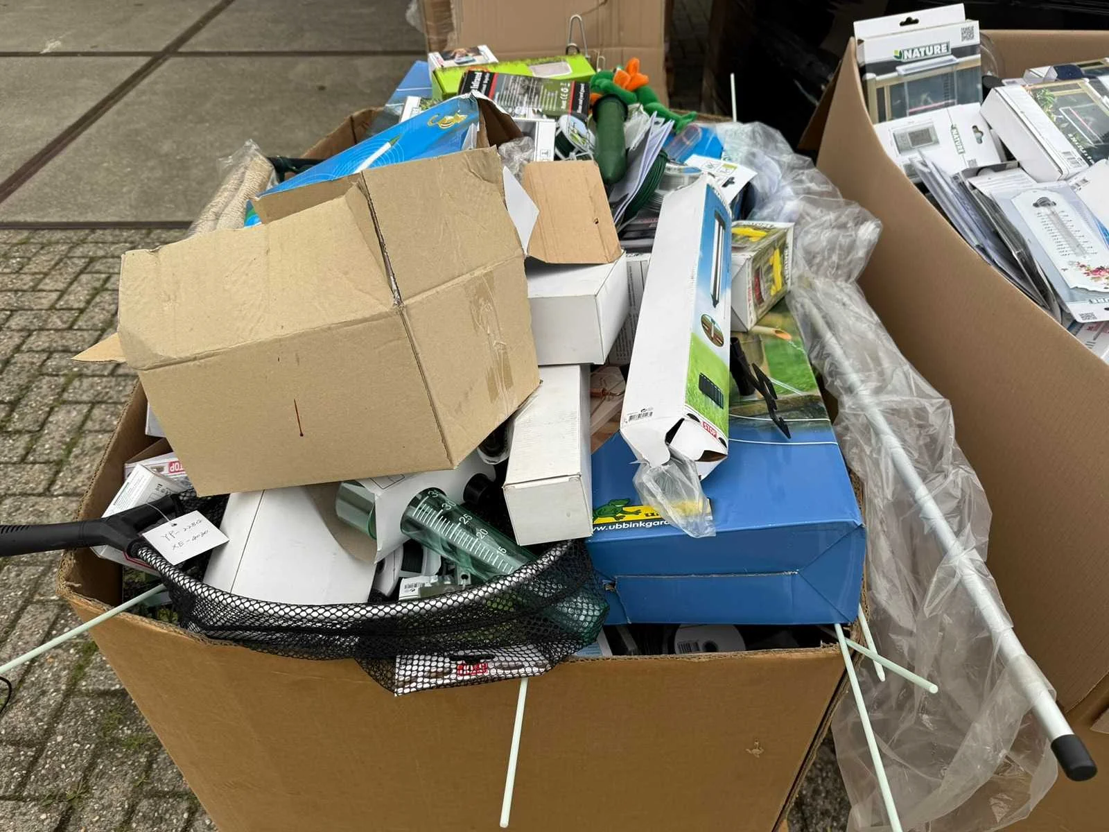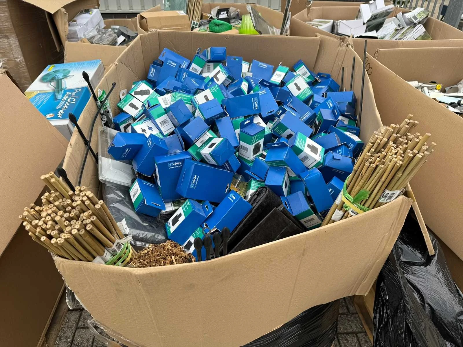 Partij bevat onder andere; Vijverpompen, Vijverfolie, Overige Vijver Benodigdheden, Tuinafscheidingen, Koppelingen, Gieters, Zwembad Stofzuigers, kweekbakken, Tuingereedschap. Partij Bestaat uit 20 europallet. Grootste gedeelte bestaat uit ongebruikte goederen, resterend gedeelte uit showroom modellen en klein beetje retourgoederen.