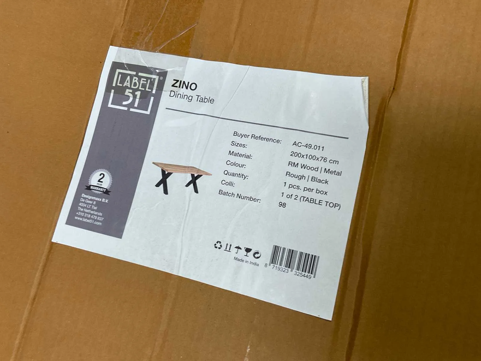 Label 51 zino 200x100 eetkamertafel