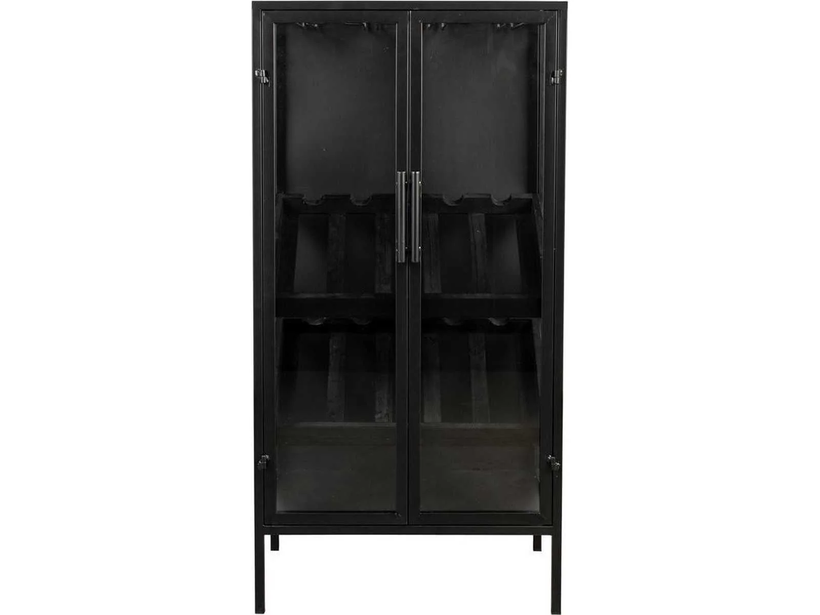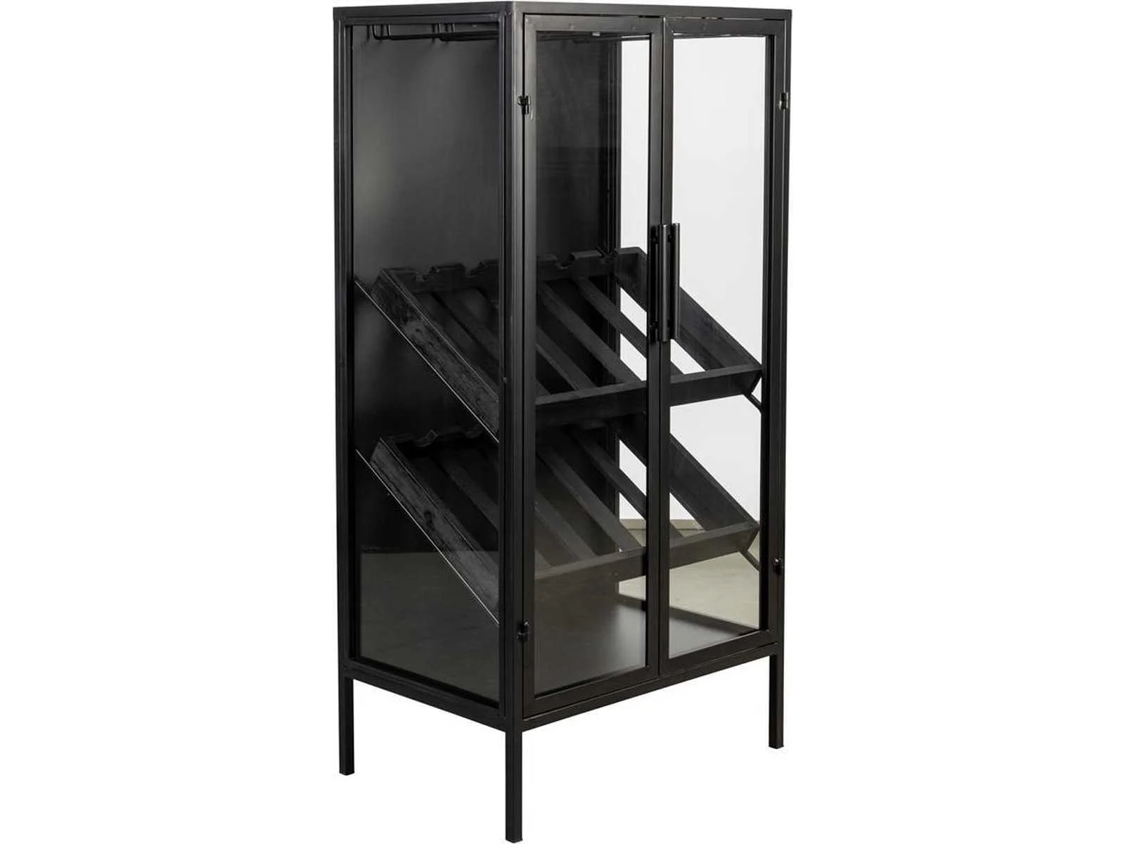 Opslag voor 10 wijnflessen. Bovenin ruimte voor wijnglazen in 4 rijen. Ongebruikt in verpakking. Merk: White Label Living Model: Rob Kleur: Zwart Gewicht: 20kg Breedte: 52cm Hoogte: 103cm Diepte: 35cm Materiaal: Glas, Metaal