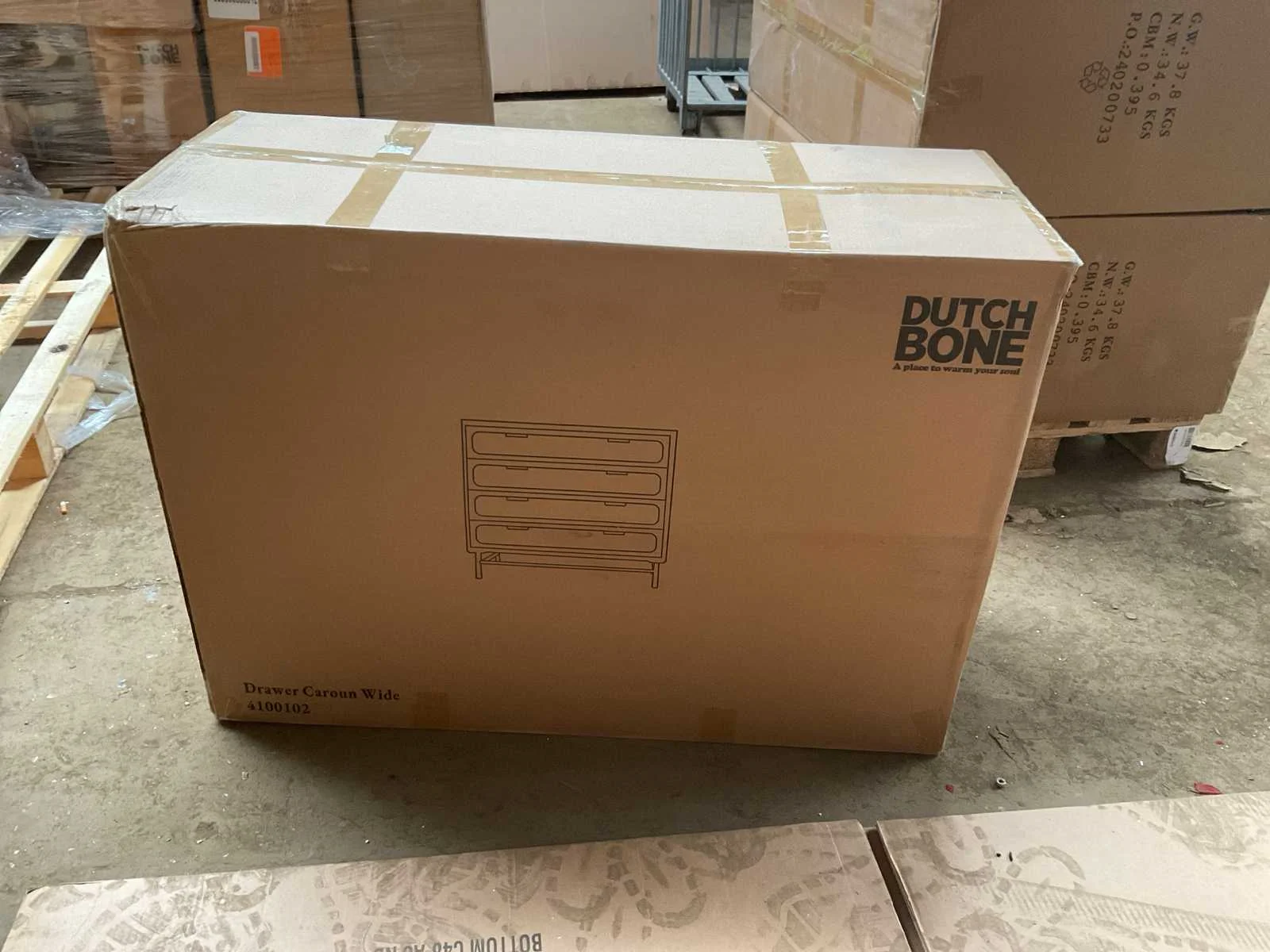 Ongebruikt in verpakking Merk: DutchBone Model: Caroun breed Kleur: Bruin Gewicht: 34.6kg Breedte: 105cm Hoogte: 88cm Diepte: 38cm Materiaal: Gecarboniseerde bamboe
