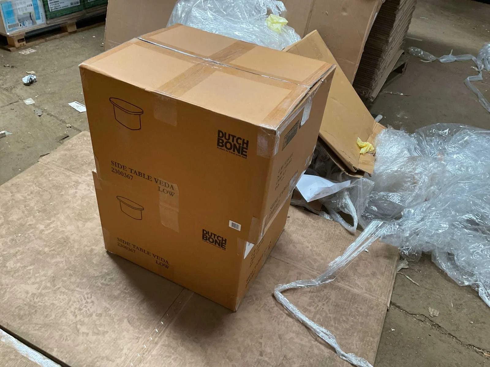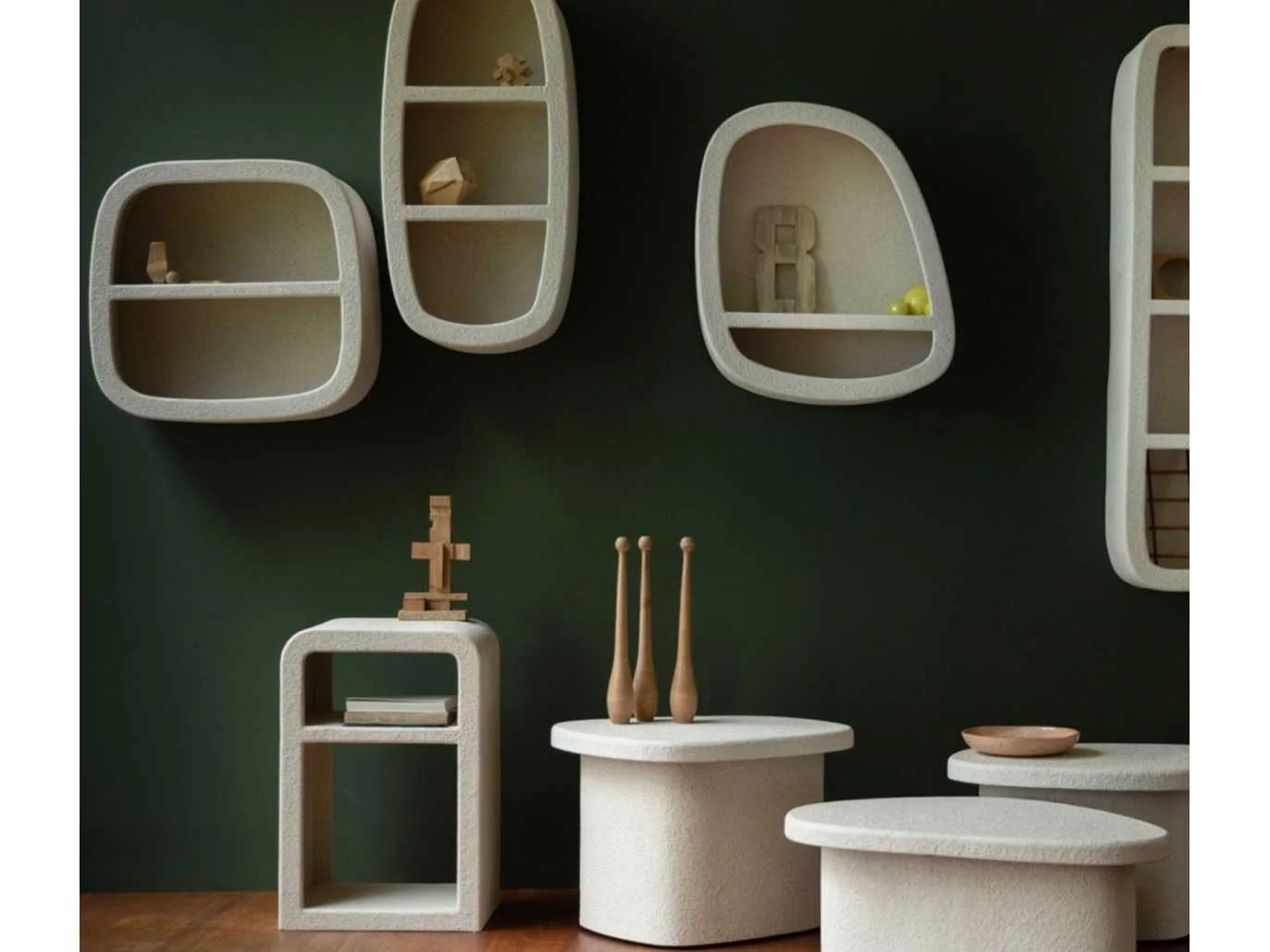 Ongebruikt. Merk: Dutchbone Model: Veda Vorm: asymmetrische Kleur: Beige Gewicht: 7kg Lengte: 56cm Breedte: 45cm Hoogte: 34cm Materiaal: Gerecycleerd marmer, MDF
