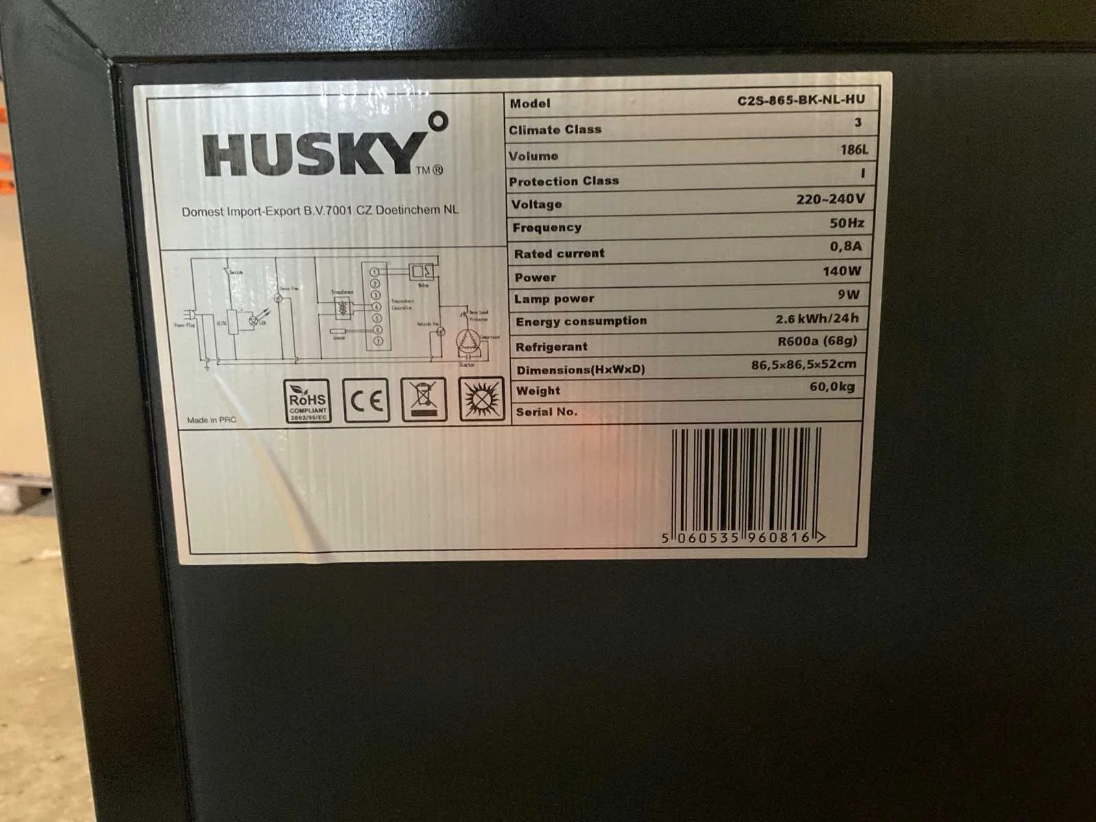 Huskey c2s-865-bk-nl-hu koelkast