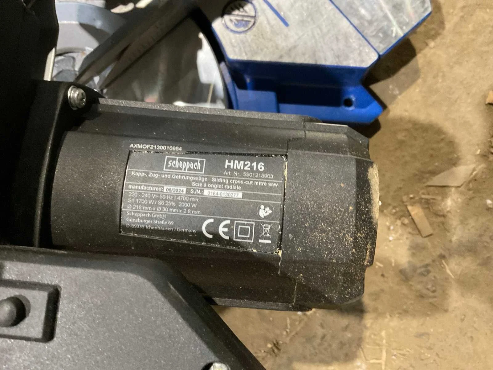Dit betreft een retourproduct. Merk: Scheppach Type: HM216 Serienummer: 5901215903 Zaagblad Ø: 216mm Verstek: true Motorvermogen (kW): 2kW Afmeting l: 735mm Afmeting b: 593mm Afmeting h: 505mm Aansluiting: 240V Machinegewicht: 15kg