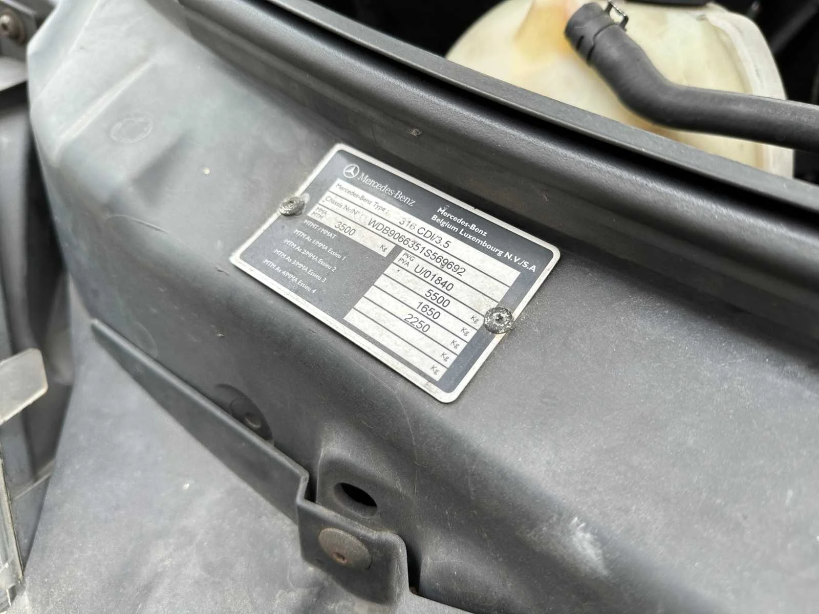 Kenteken: V-10-DHX Merk: Mercedes-Benz Model: Sprinter Type: 516 2.2 CDI 432 DC Afgelezen kilometerstand: 495551km Cilinderinhoud: 2143cc Vermogen (kW): 120kW Brandstof: Diesel Chassisnummer: WDB9066351S569692 Laadvermogen: 1280kg NAP status: Geen oordeel Datum eerste toelating: 2011-05-13 Datum eerste toelating (NL): 2024-02-06 APK vervaldatum: 2026-02-08 Vermogen (pk): 163hp Aandrijving: achterwielaandrijving Aantal zitplaatsen: 3 Kleur: wit Transmissie: Handgeschakeld Stuurwiel: Links gestuurd Emissieklasse: 5 Ledig gewicht: 2220kg Bruto BPM (NL): 13064€ Rest BPM: 0€ Aantal cilinders: 4 Carrosserie: gesloten opbouw Nationaliteit documenten: Nederlandse kentekendocumenten Carfax Link: https://was.carfax.eu/v0/api/ccdid/5100016408/svc/201/vinreg/V10DHX/checksum/eyJhbGciOiJIUzI1NiIsInR5cCI6IkpXVCJ9.eyJleHAiOjE3NjIxNTUxMjl9.8AtaF3JbM85uvMbqQ99gr41So7FdEg6R3J6zGiXHN2Q