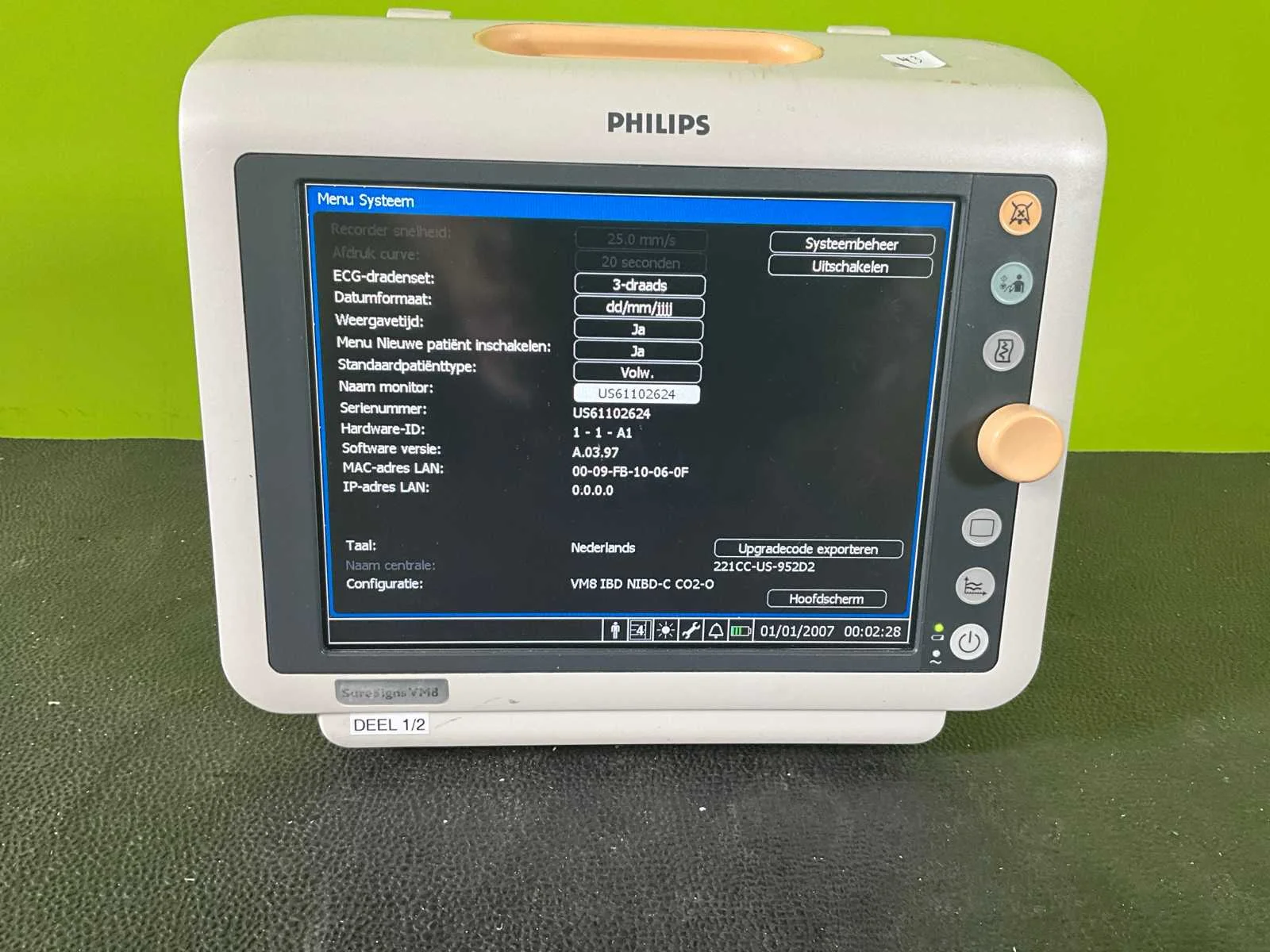 Sptocheck bewakingsmonitor Merk: Philips Type: Suresigns VM8 Bouwjaar: 2006 Serienummer: US61102624 Aansluiting: 230V