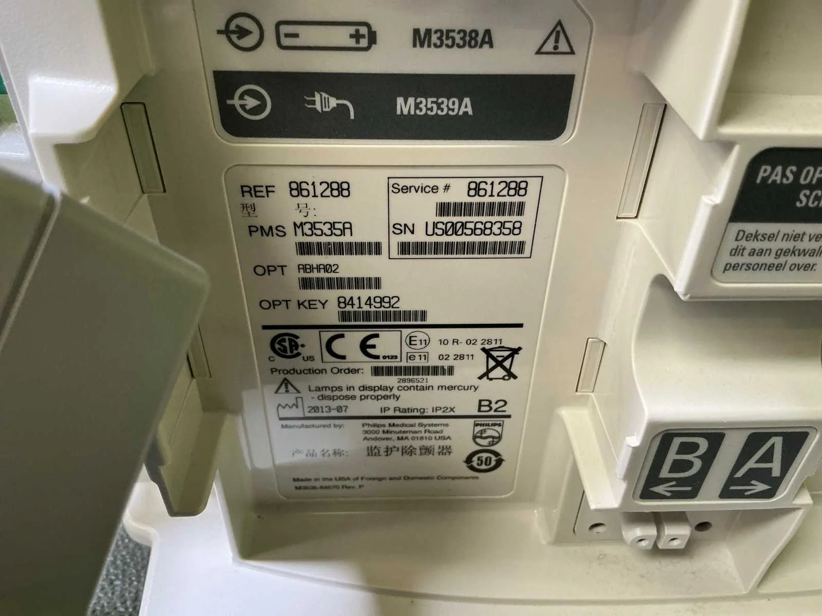 Opties: 3-leads ECG, acc tas, AC adapter, no battery Merk: Philips Type: MRx M3538A Serienummer: US00568358