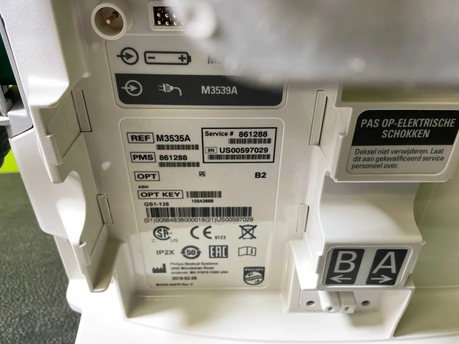 Opties: 3-leads ECG, acc tas, AC adapter, no battery Merk: Philips Type: MRx M3538A Serienummer: US00597029