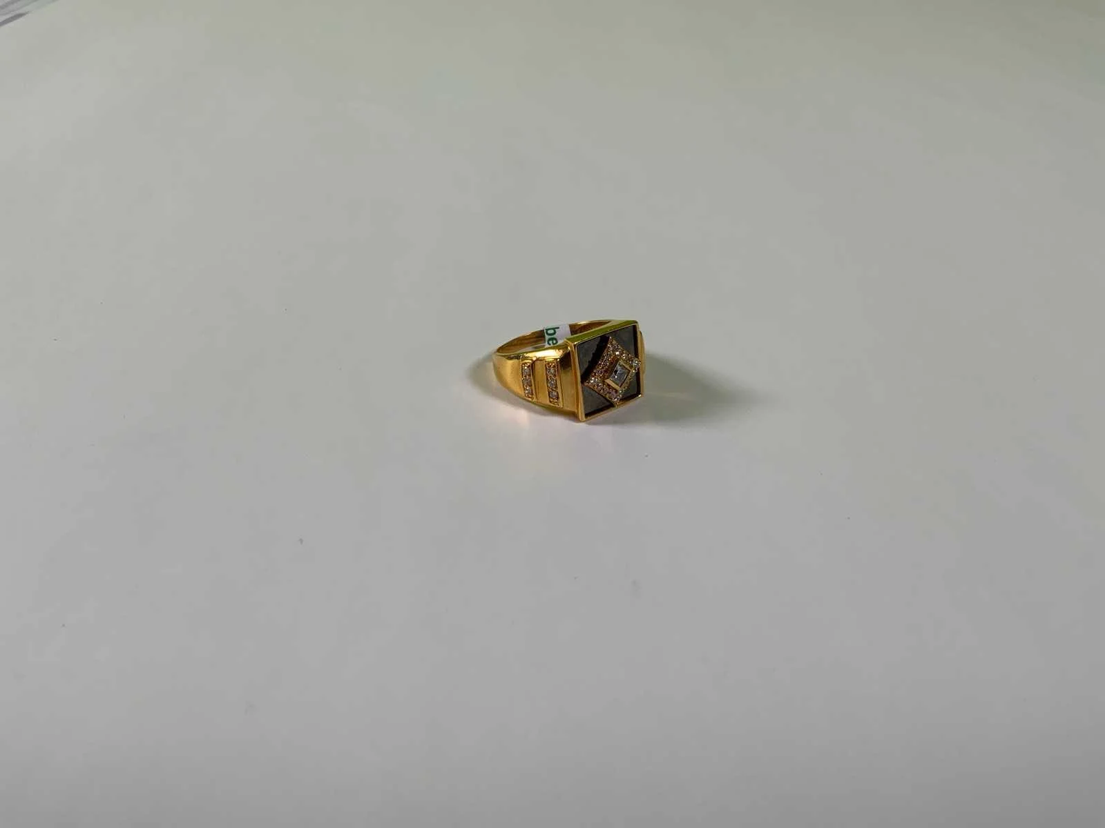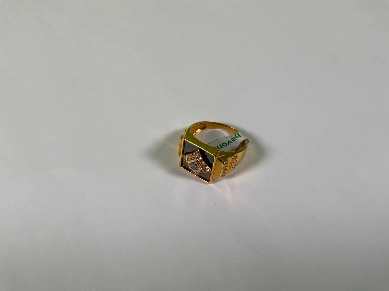 Vierkante kop bezet met glasstenen (833/000) Product type: 20 krt geelgouden