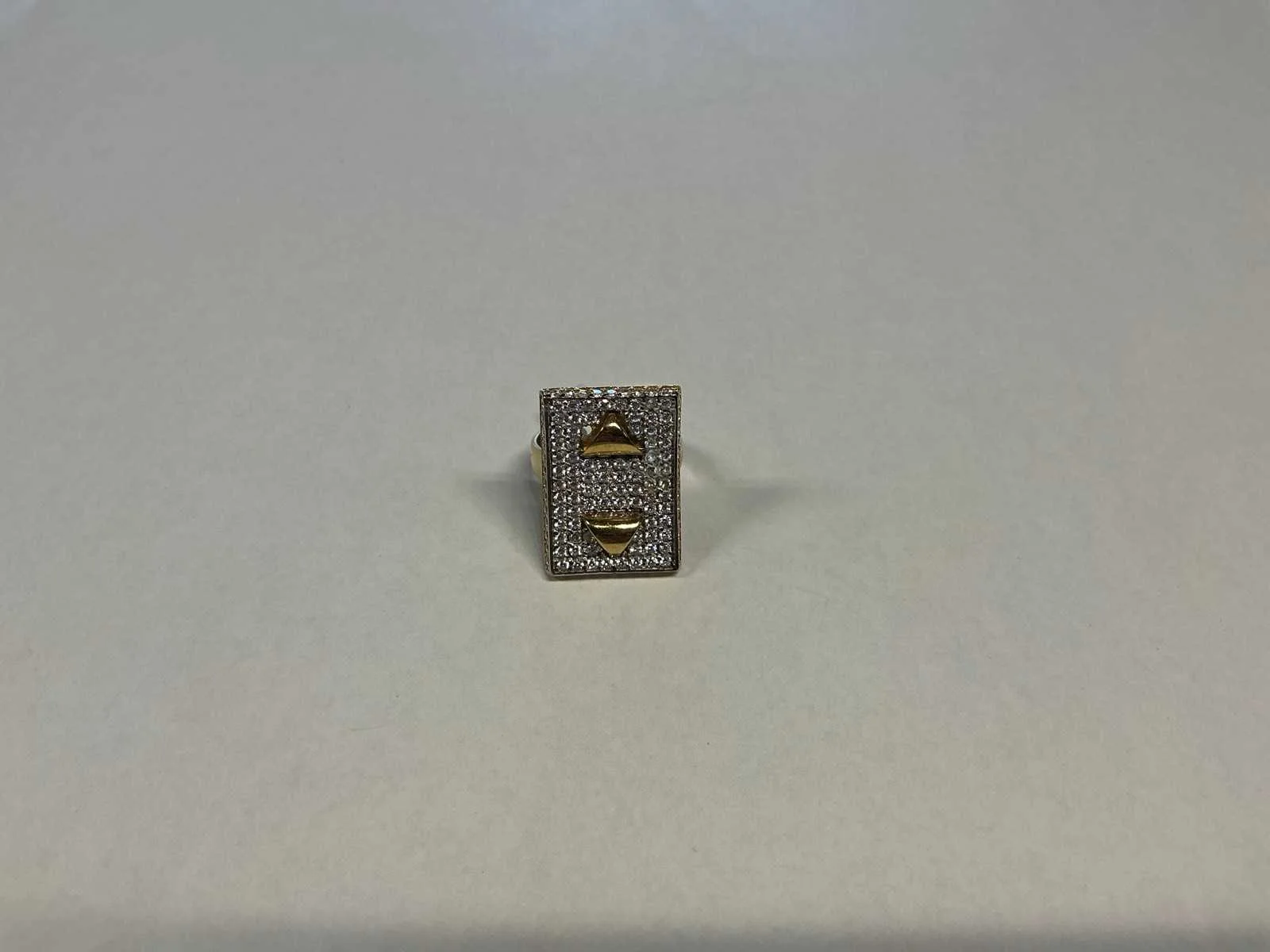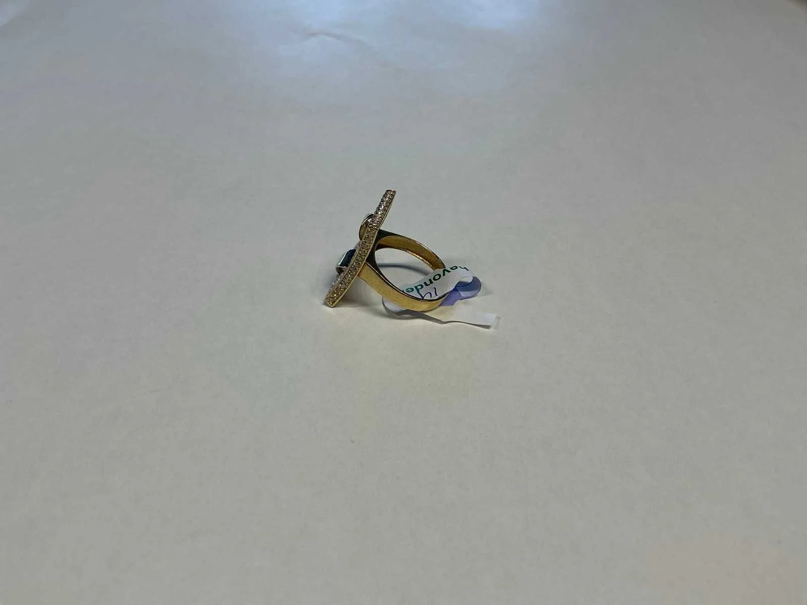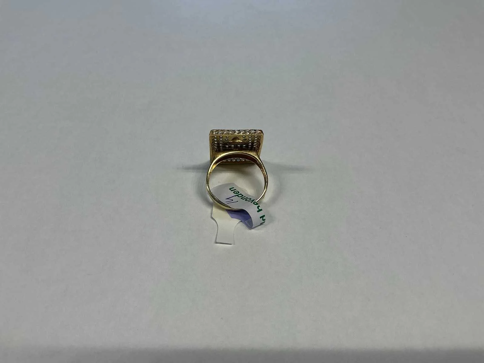 Een 14 karaats (585/000) geelgouden rijring bezet met zirkonia's. Bruto gewicht: 7,4 gram. Product type: 14 krt geelgouden